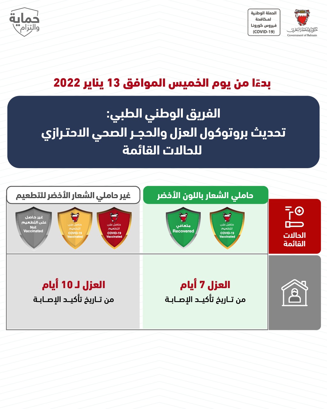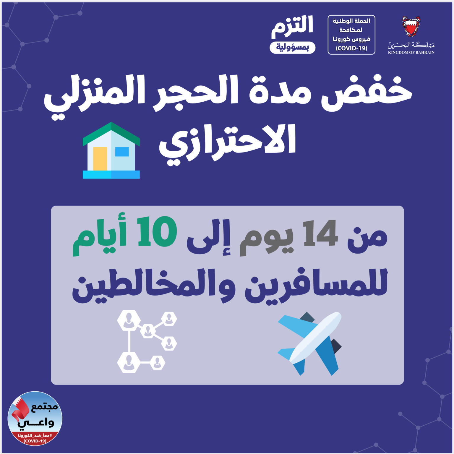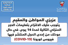 خفض مدة الحجر المنزلي الاحترازي من 14 يوم إلى 10 أيام للمسافرين والمخالطين