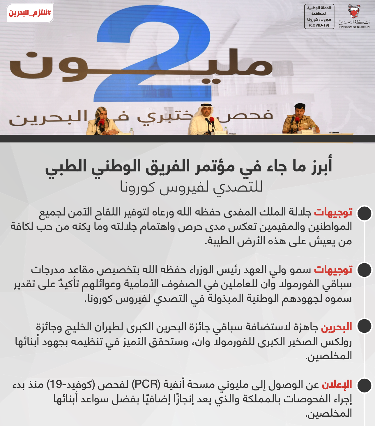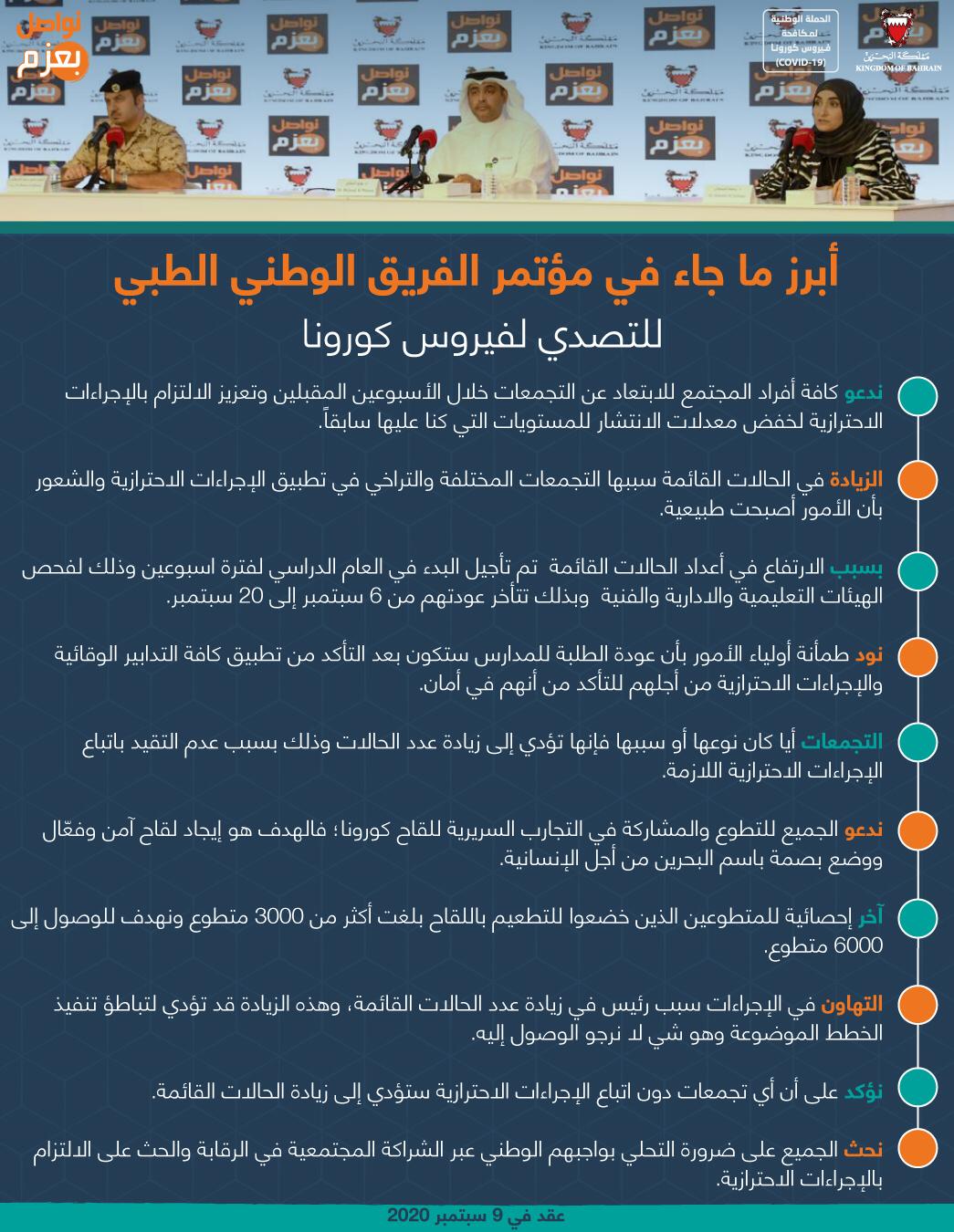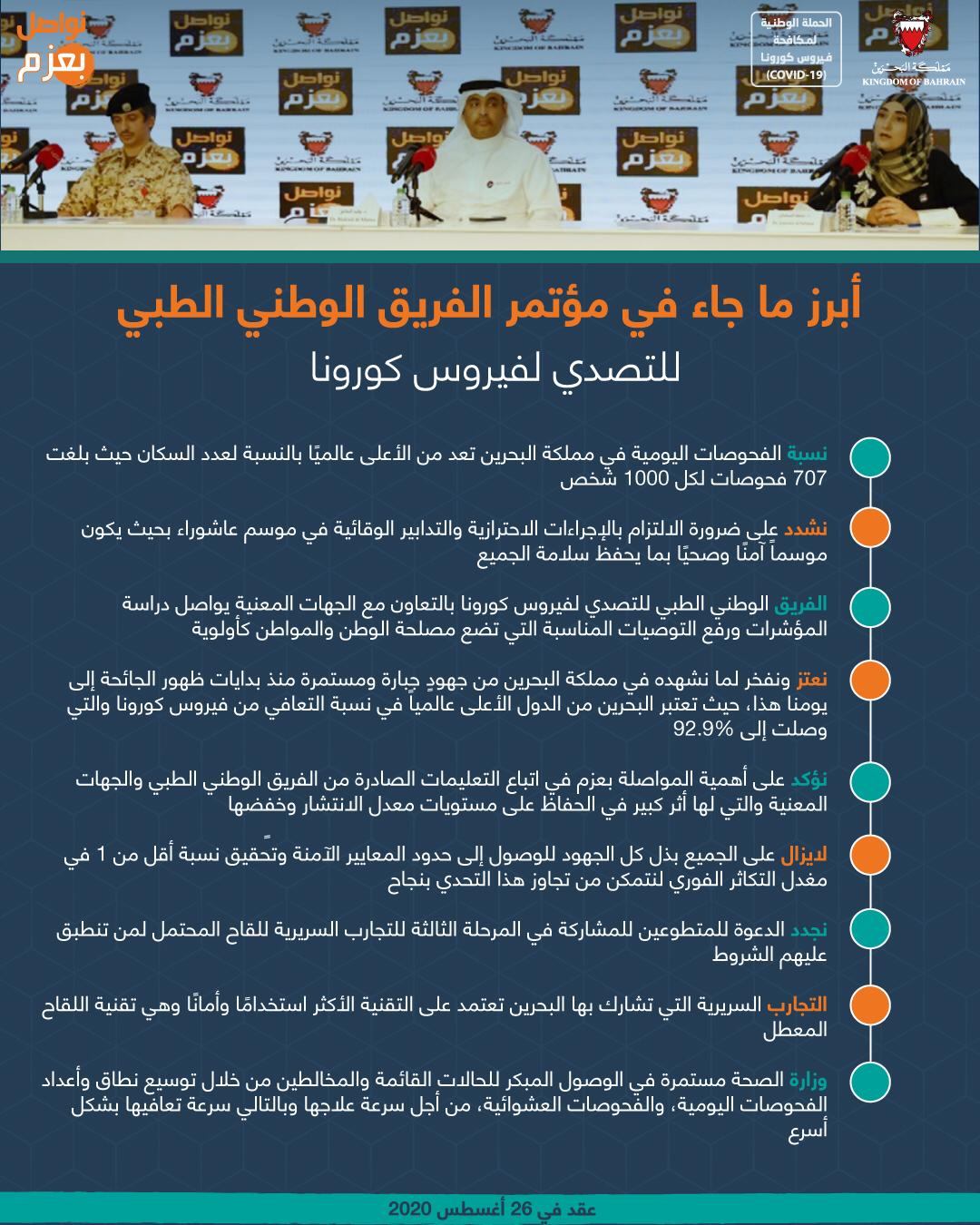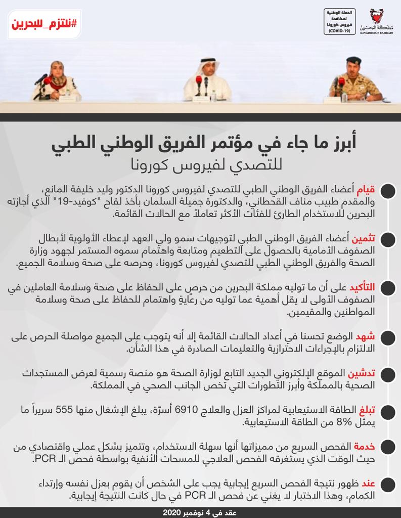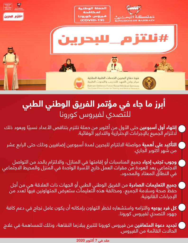 أبرز ما جاء في المؤتمر الصحفي للفريق الوطني للتصدي لفيروس كورونا #نواصل_بعزم #كلنا_فريق_البحرين