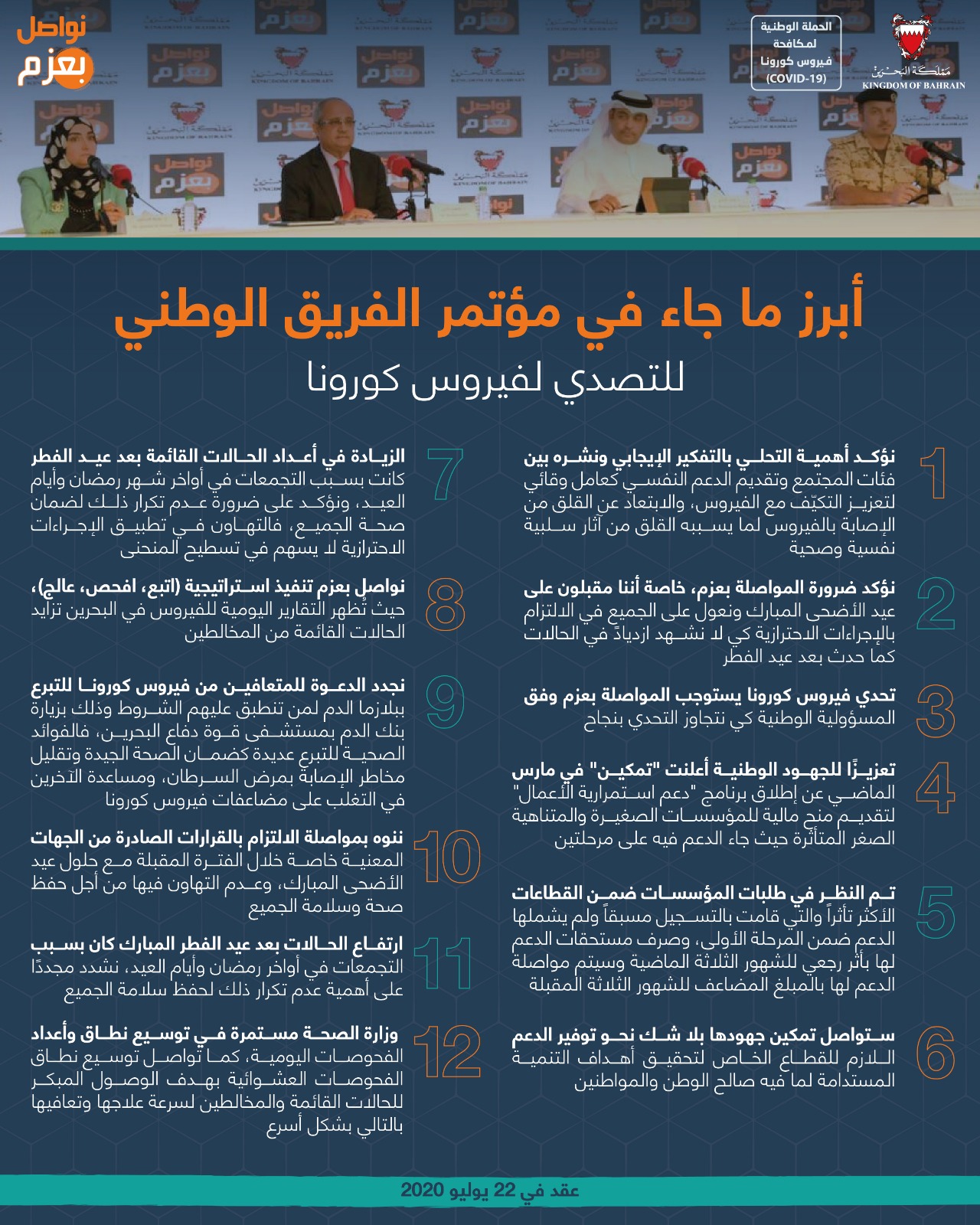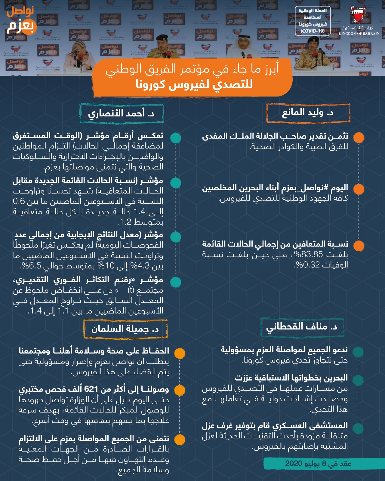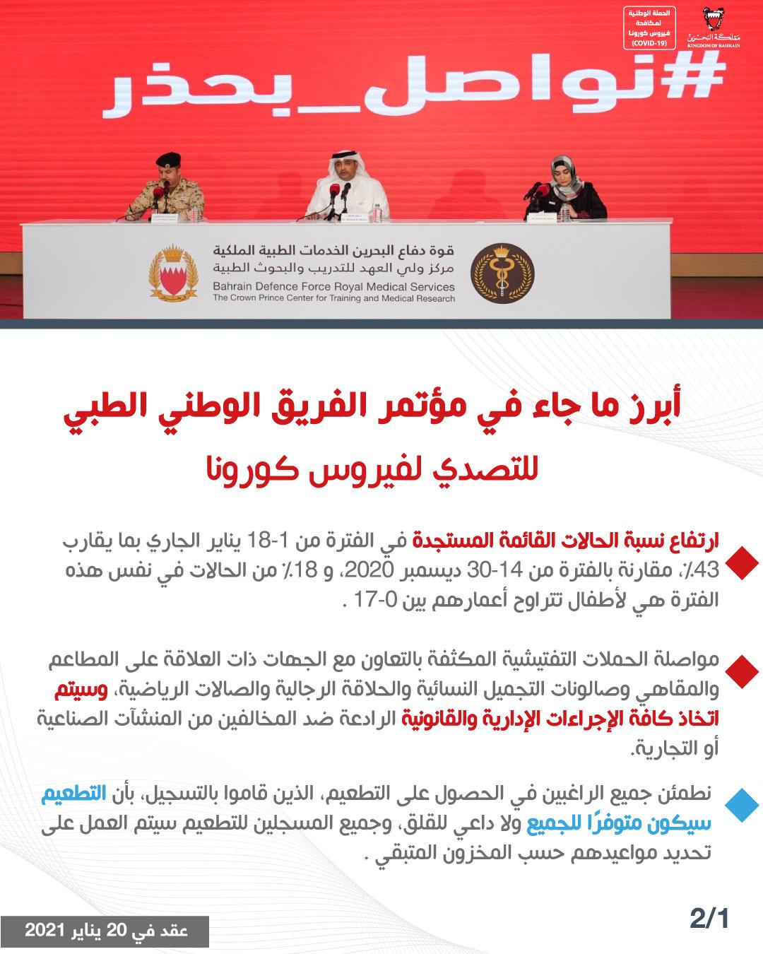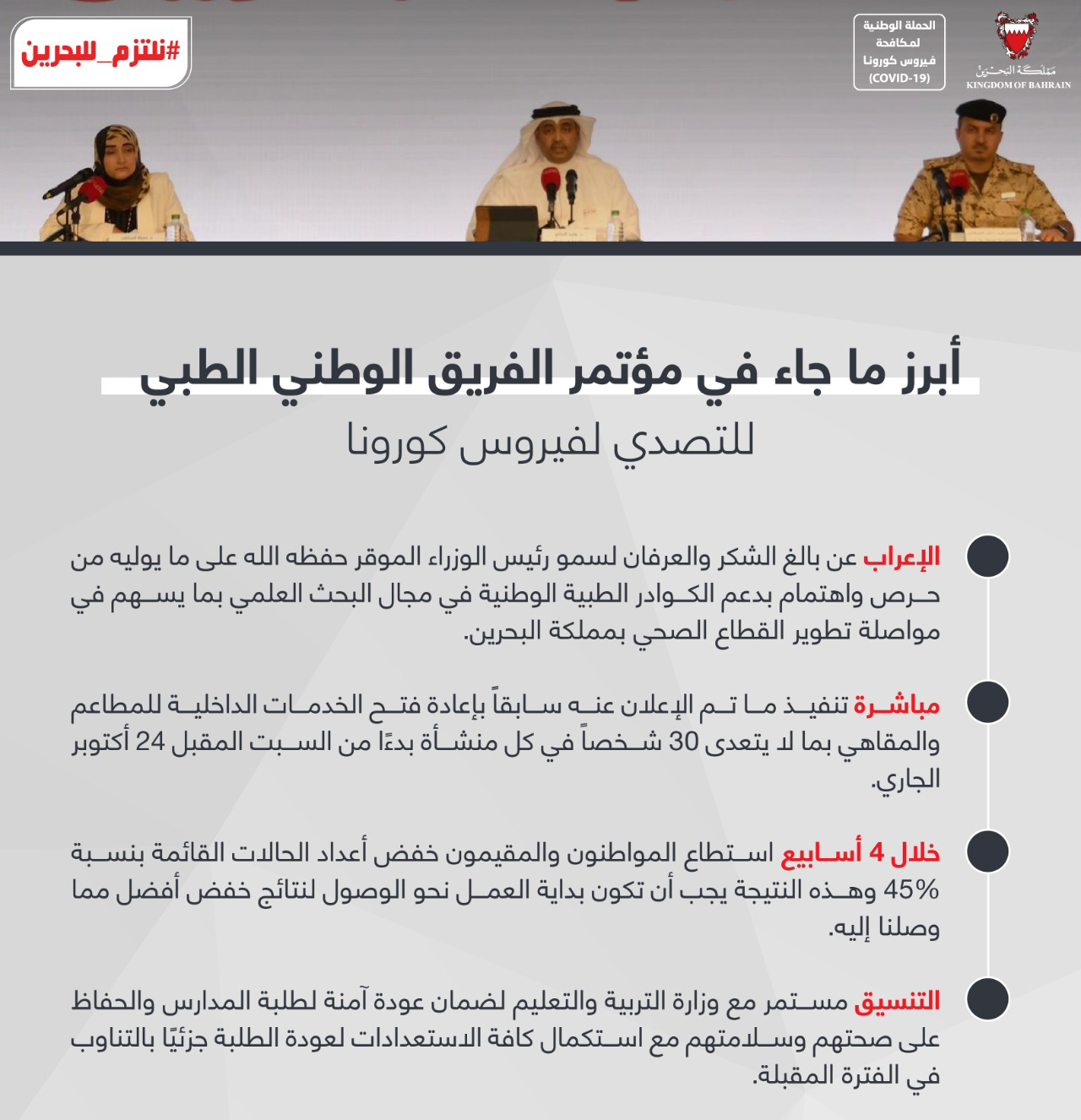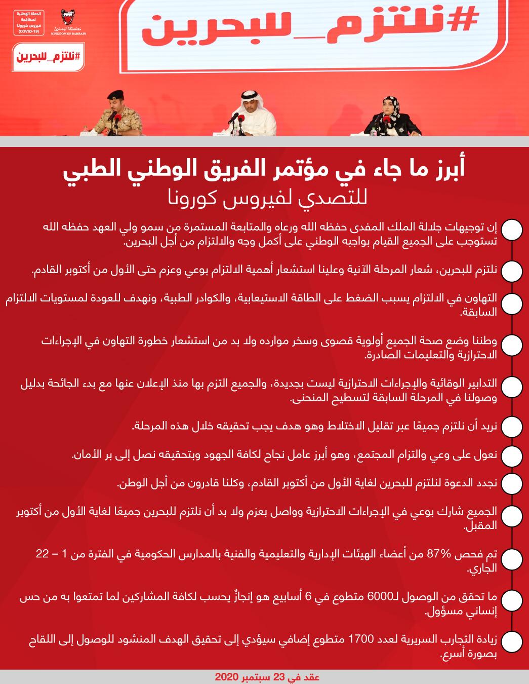 أبرز ما جاء في المؤتمر الصحفي للفريق الوطني للتصدي لفيروس كورونا #نواصل_بعزم #كلنا_فريق_البحرين