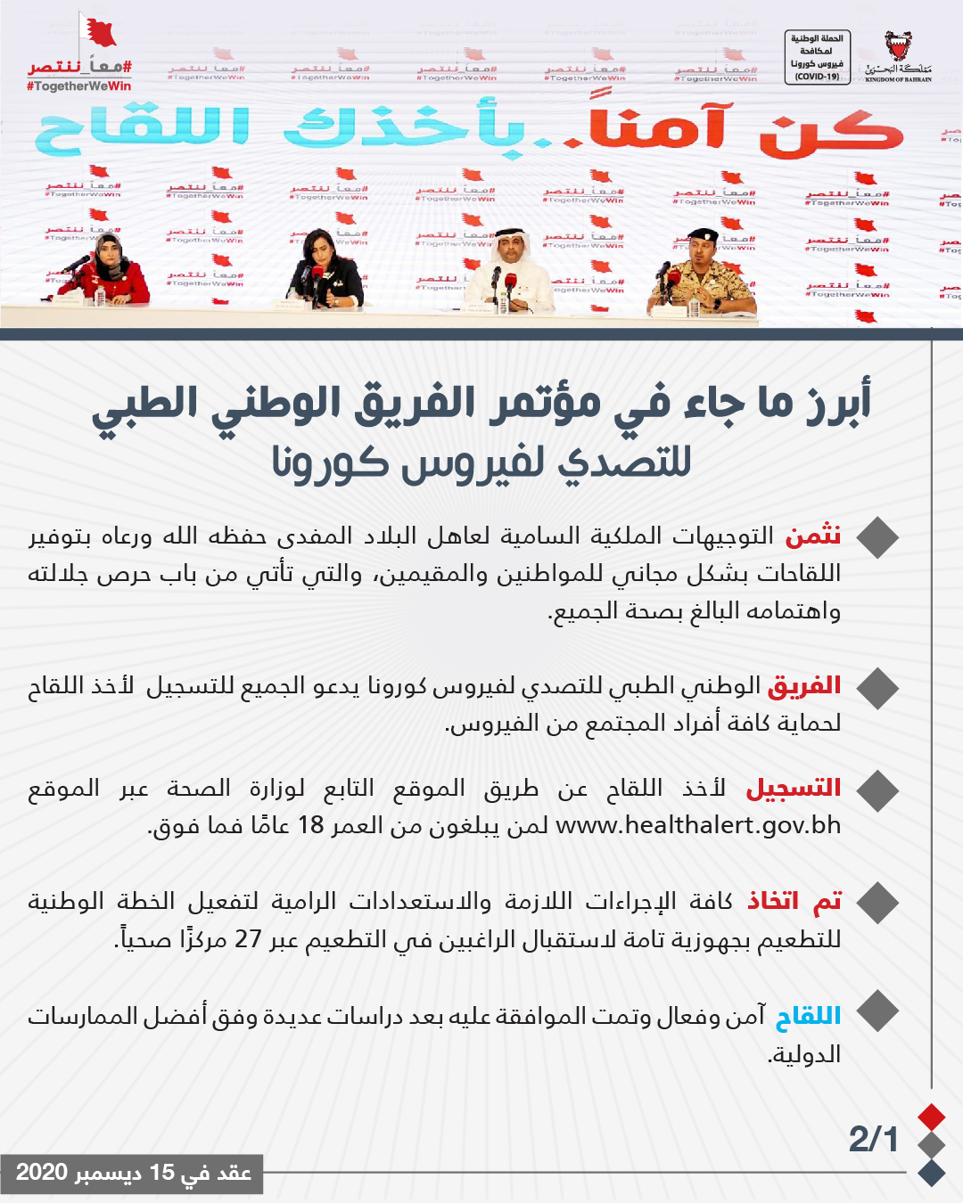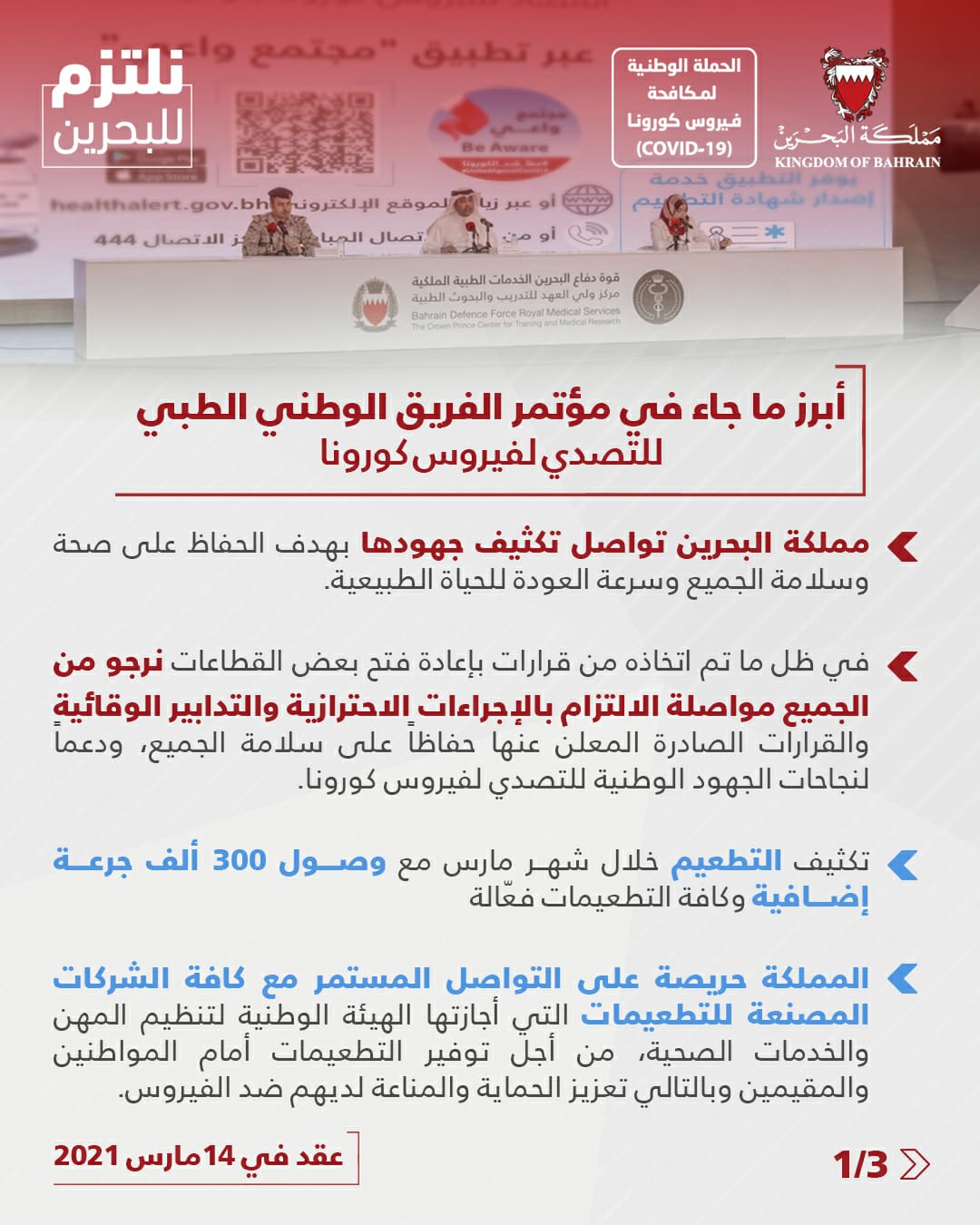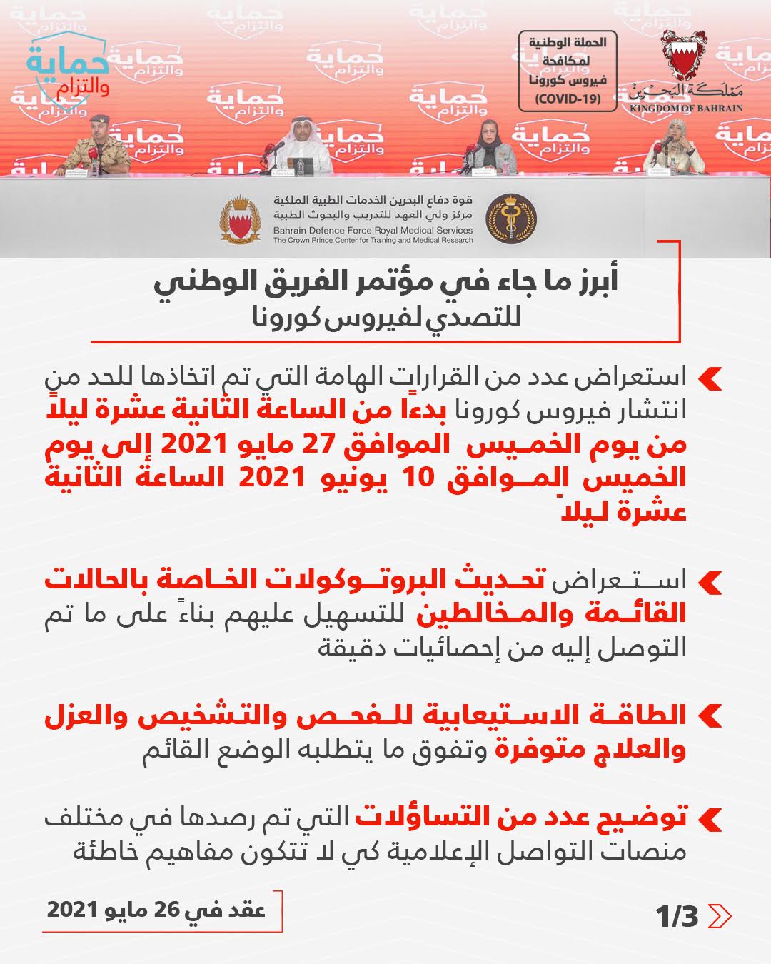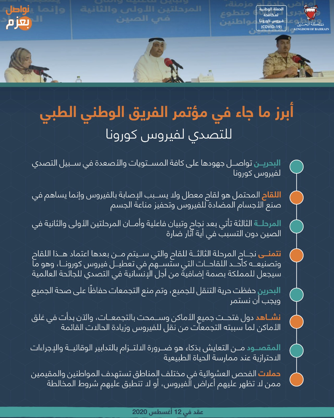 أبرز ما جاء في المؤتمر الصحفي للفريق الوطني للتصدي لفيروس كورونا #نواصل_بعزم #كلنا_فريق_البحرين