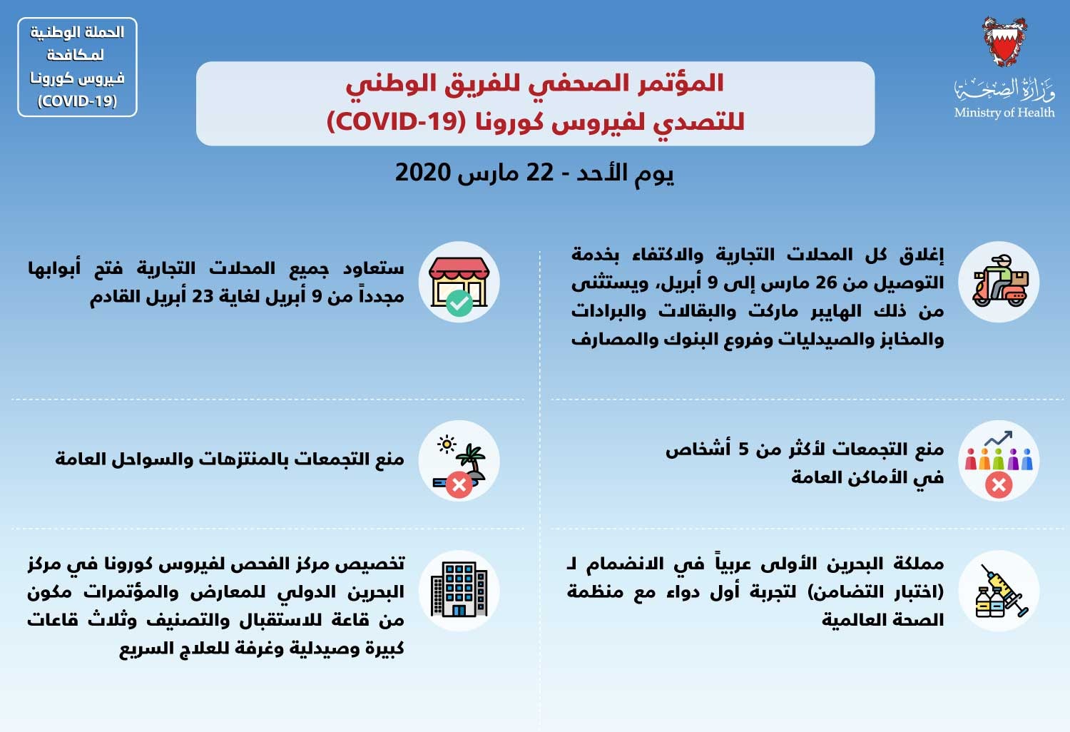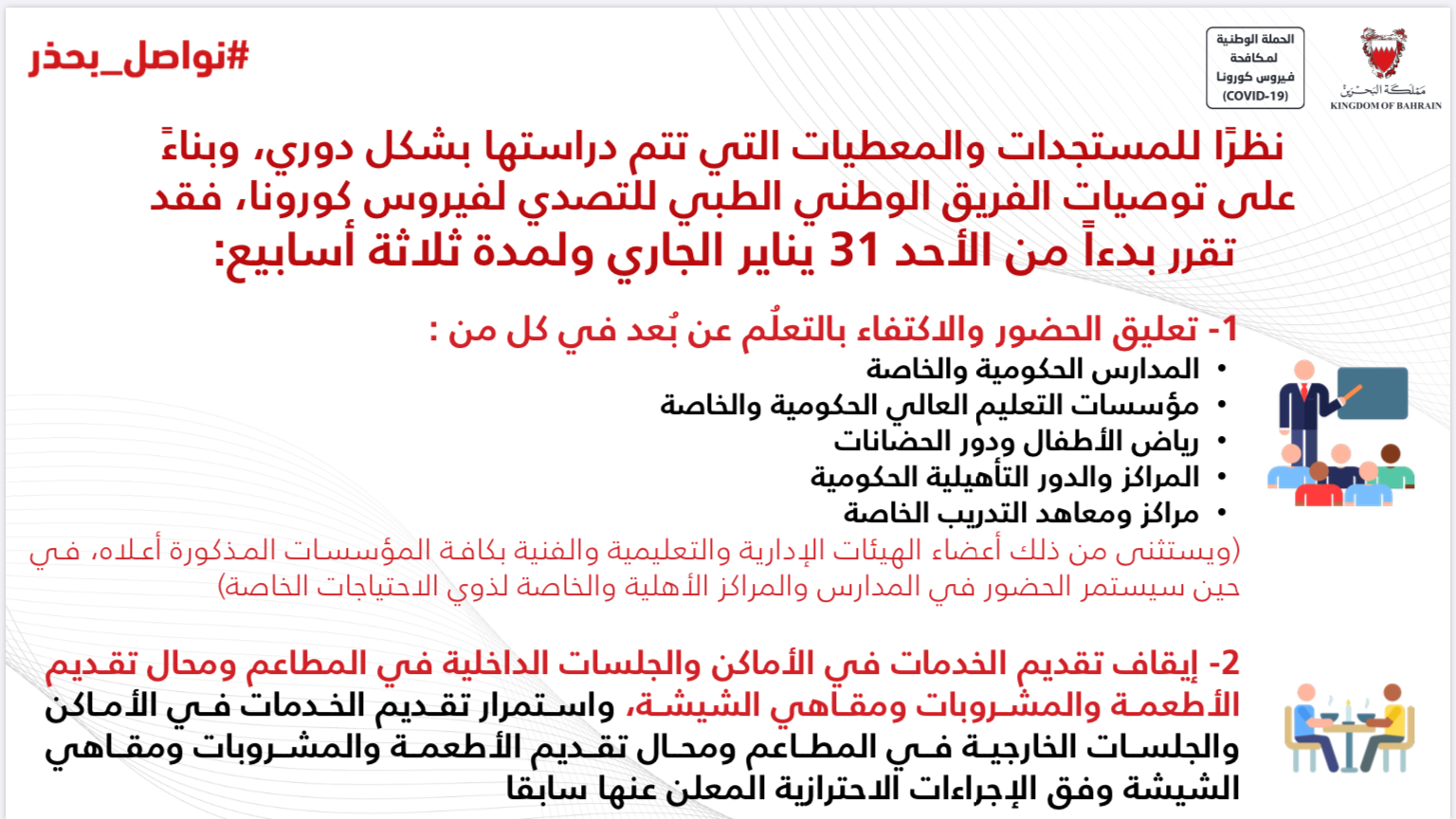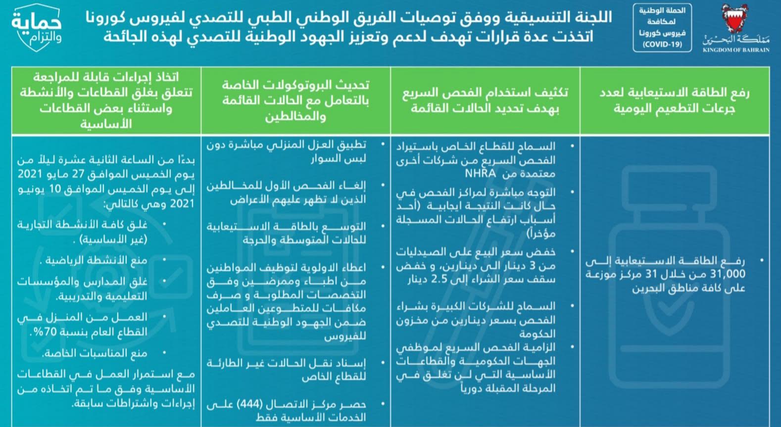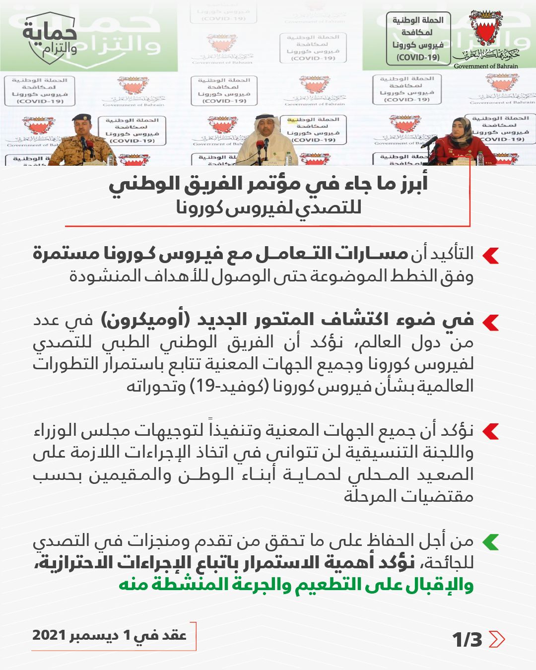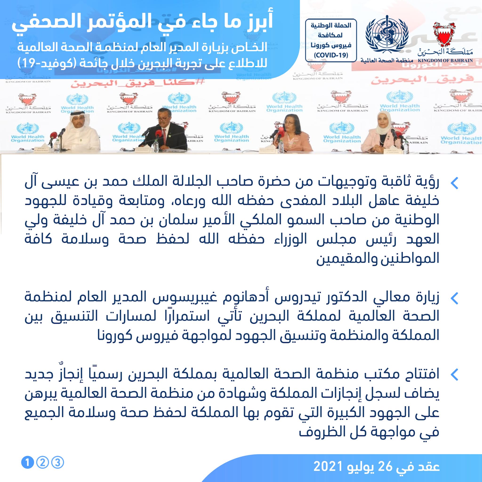 أبرز ما جاء في المؤتمر الصحفي للفريق الوطني للتصدي لفيروس كورونا #نواصل_بعزم #كلنا_فريق_البحرين