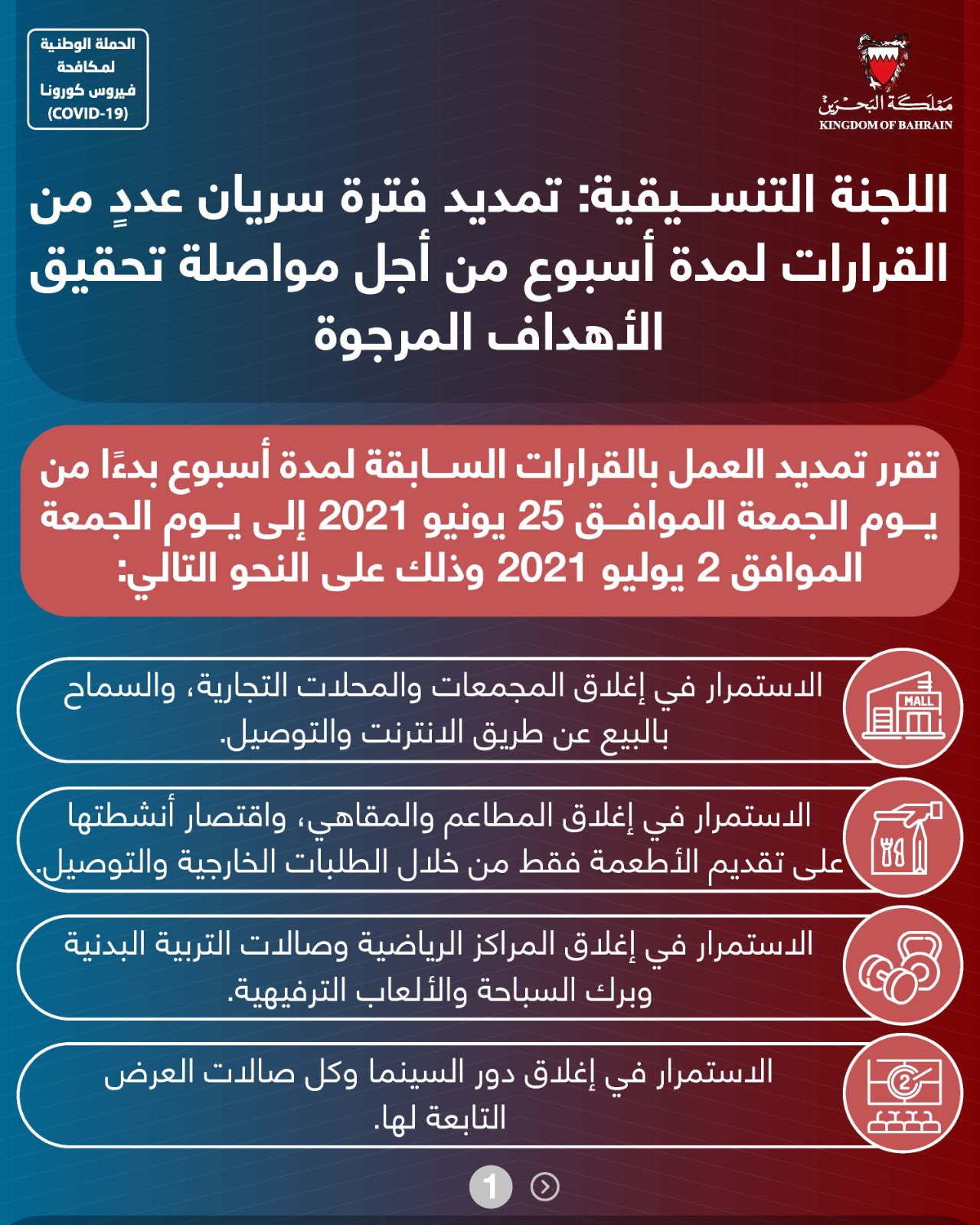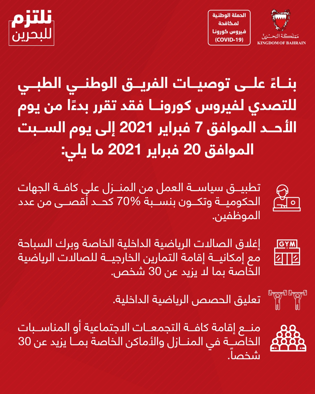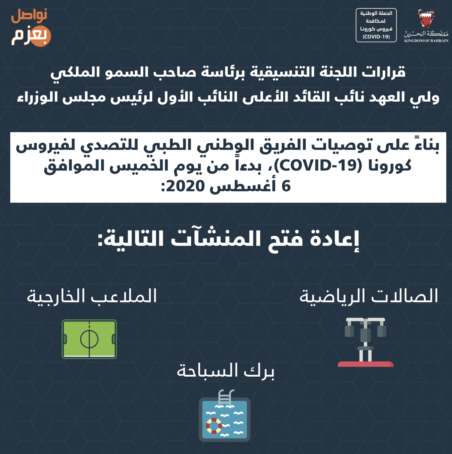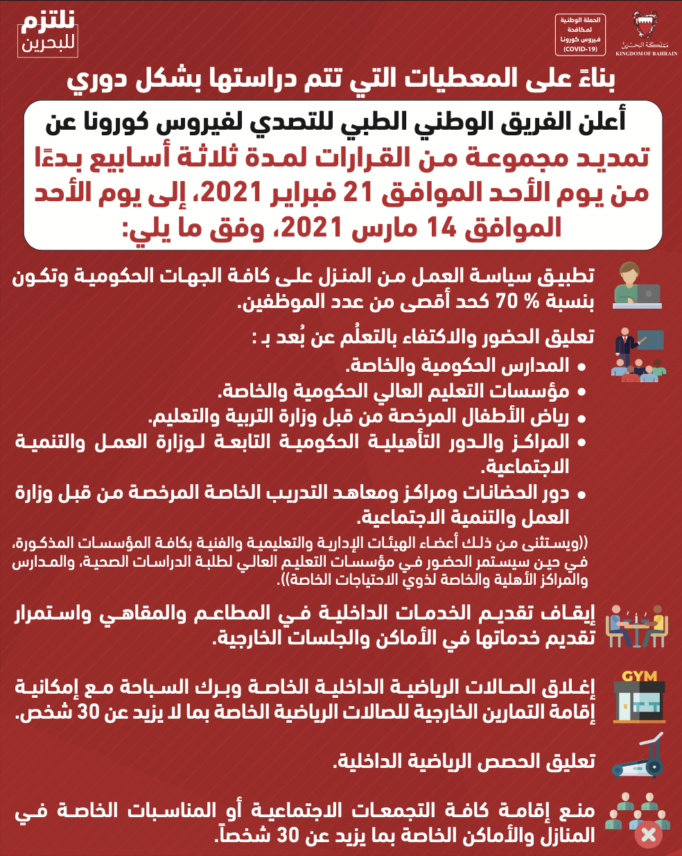 قرارات اللجنة التنسيقية برئاسة صاحب السمو الملكي ولي العهد نائب القائد الأعلى من أجل الحفاظ على صحة وسلامة الجميع خلال شهر رمضان
