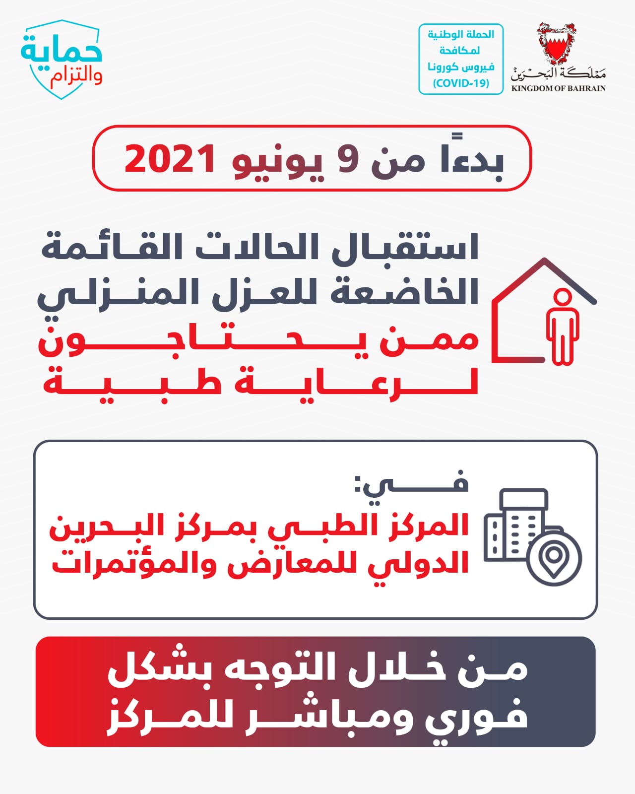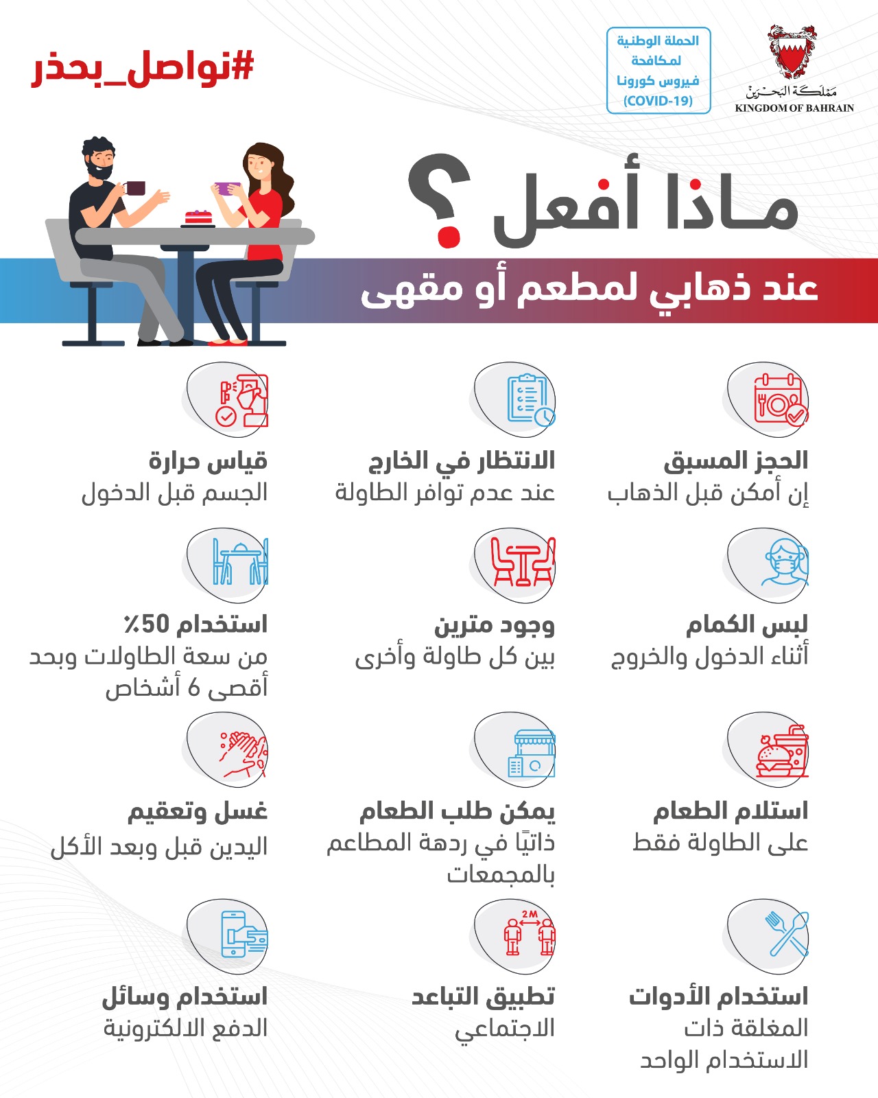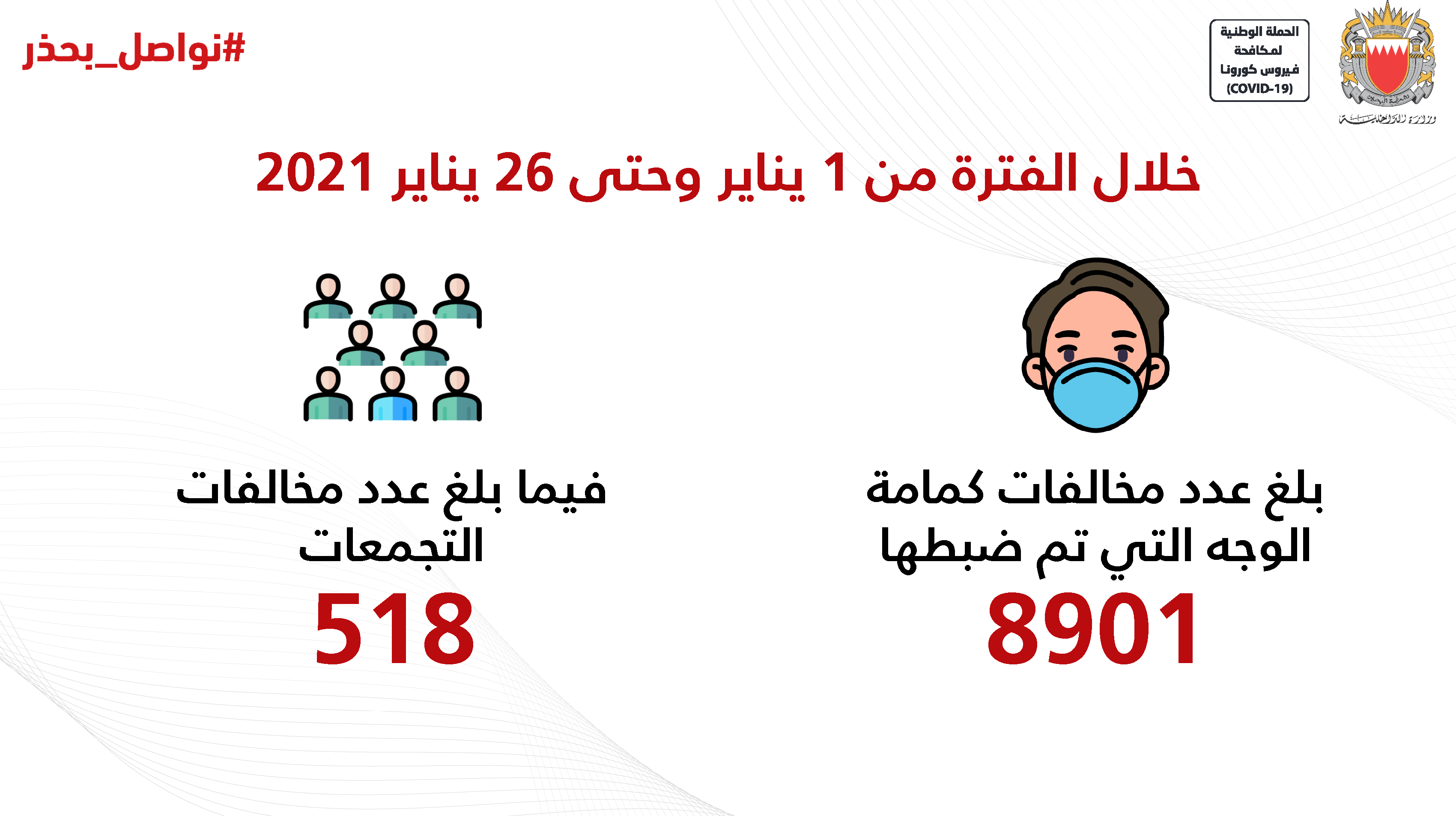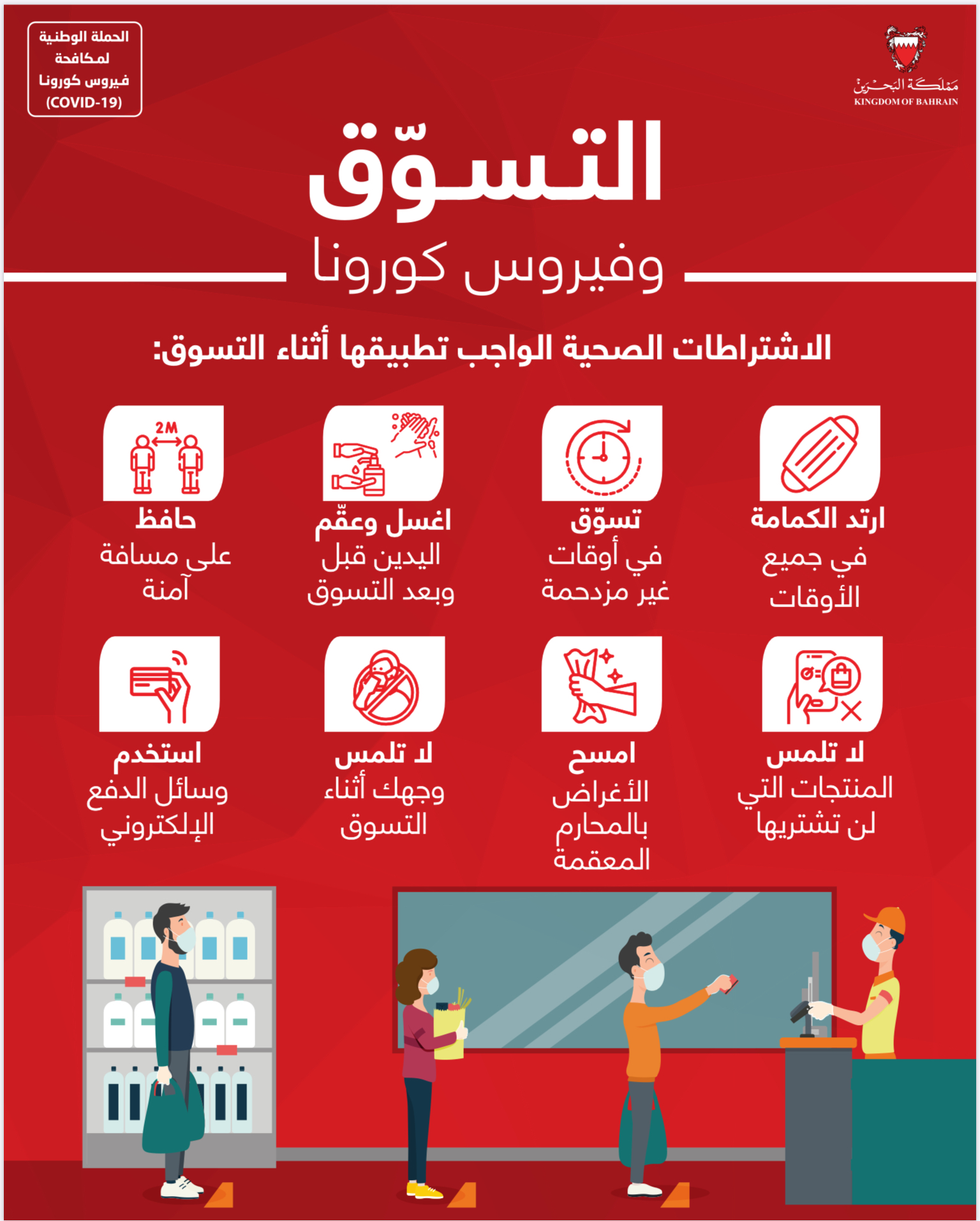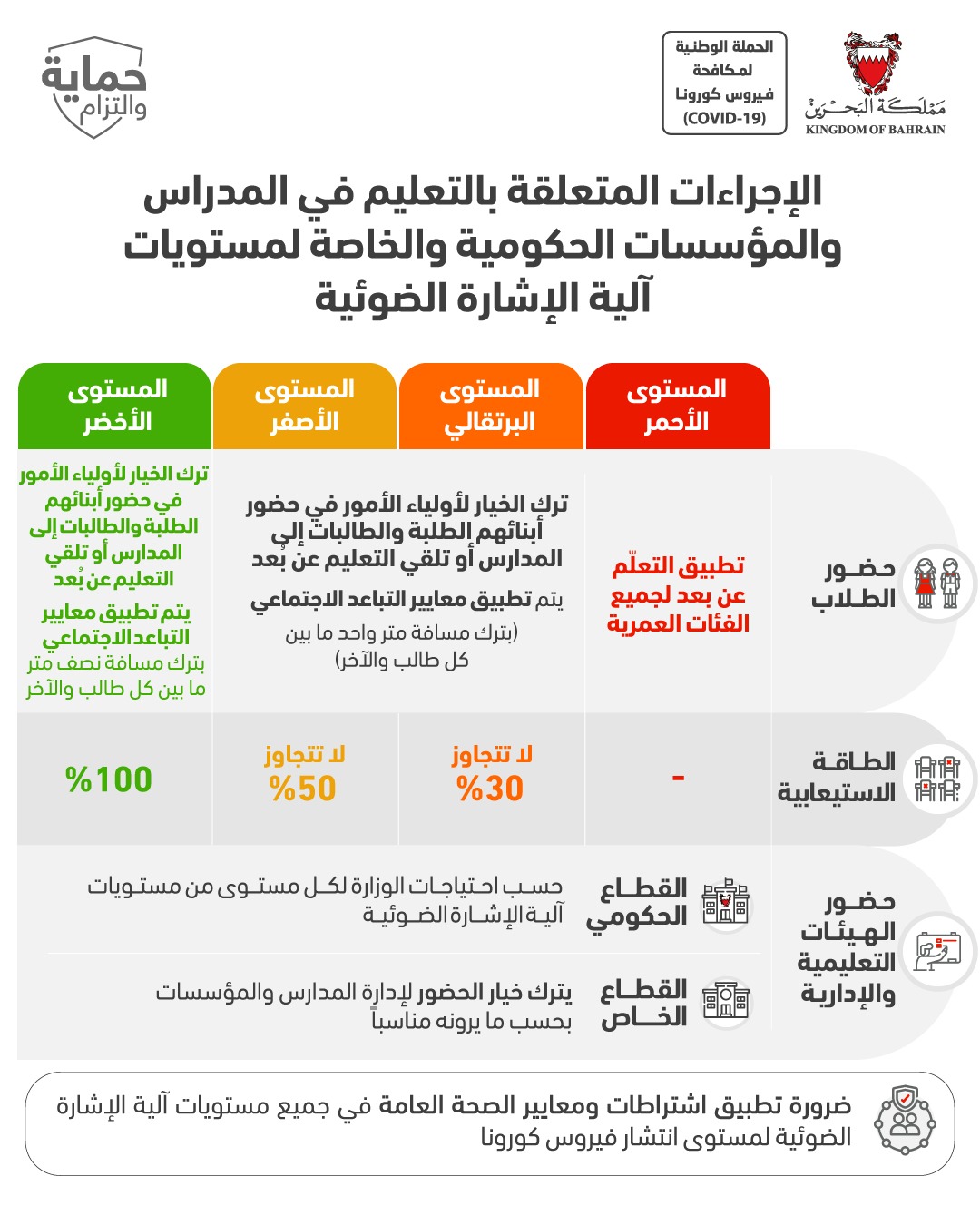 من أجل مواصلة الحفاظ على صحة وسلامة الجميع وبناءً على توصيات الفريق الوطني الطبي للتصدي لفيروس كورونا، تقرر بدءًا من اليوم الأربعاء الموافق 3 يونيو 2020 إلزامية ارتداء الكمامات