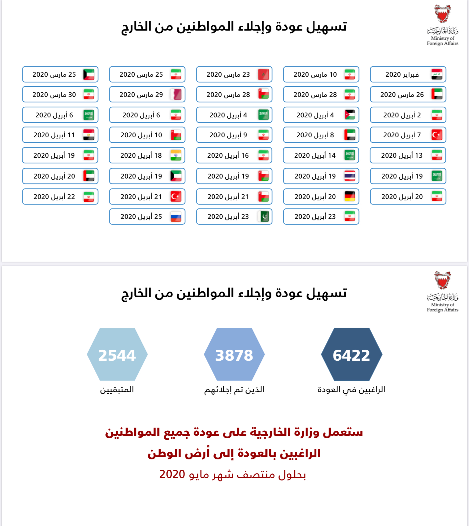 تنويه للعائدين من إيران خلال فبراير