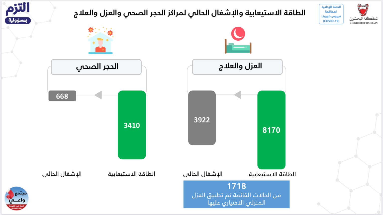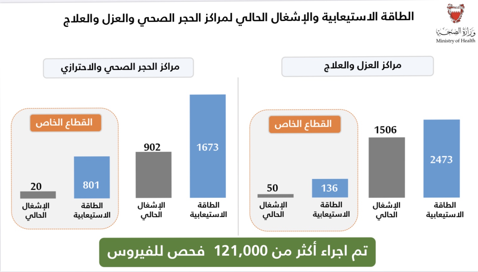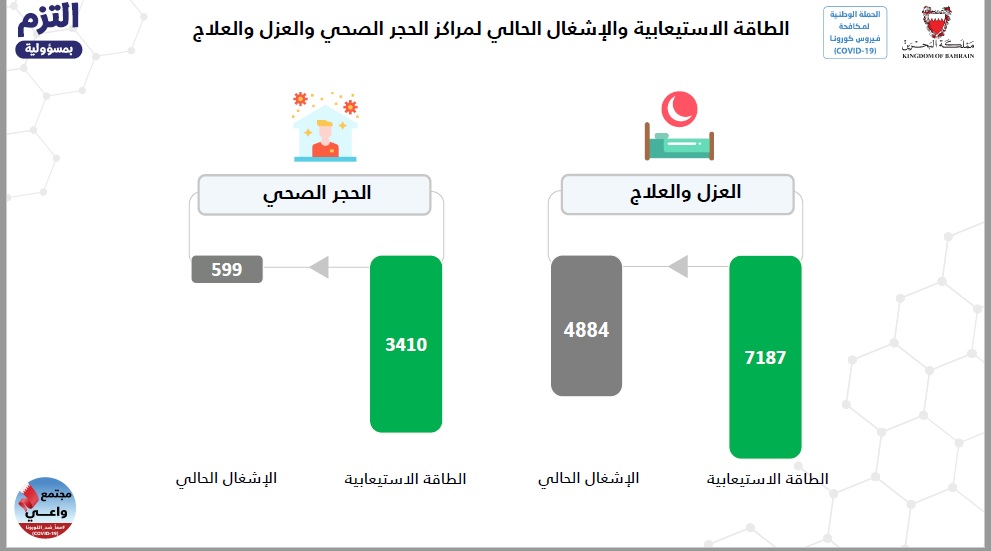 الطاقة الاستيعابية والإشغال الحالي لمراكز الحجر الصحي والعزل والعلاج