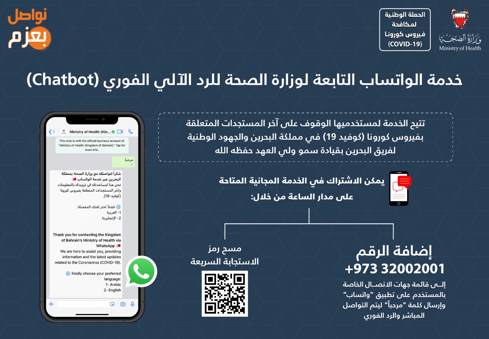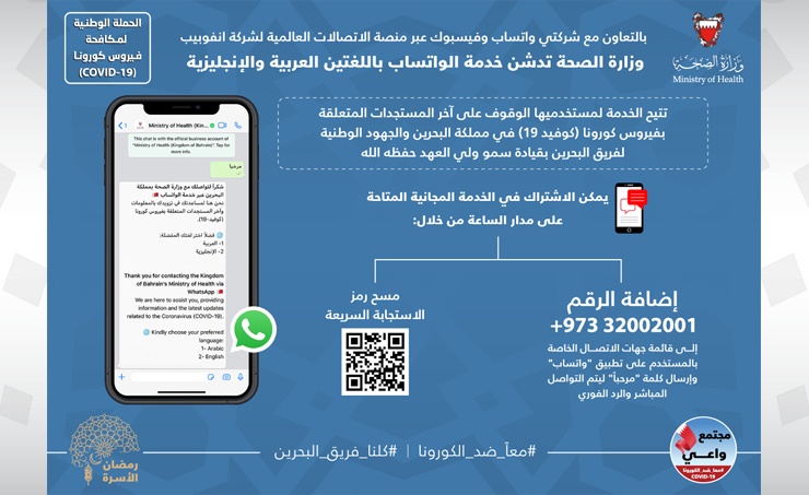 وزارة الصحة تدشن خدمة الواتساب باللغتين العربية والإنجليزية
