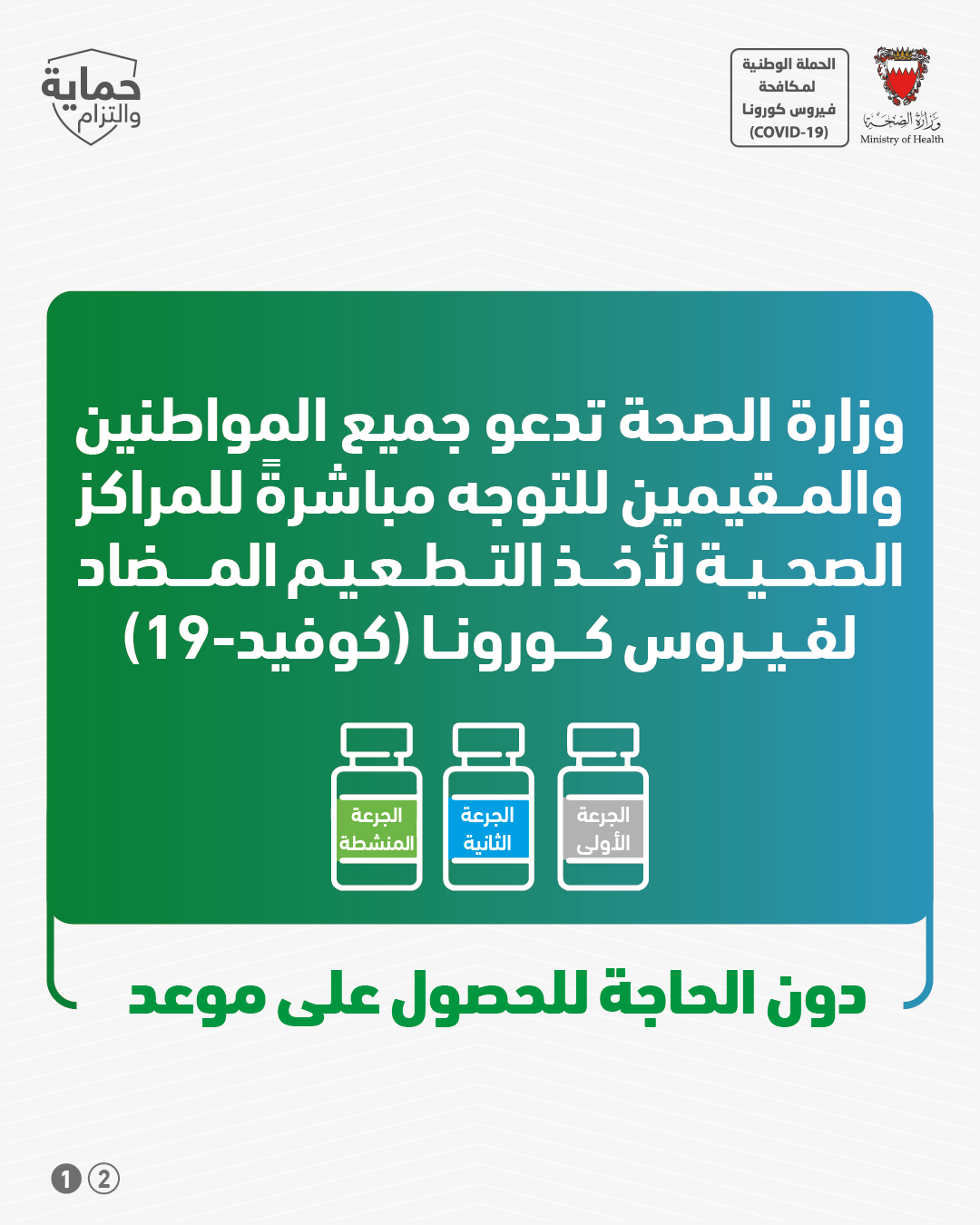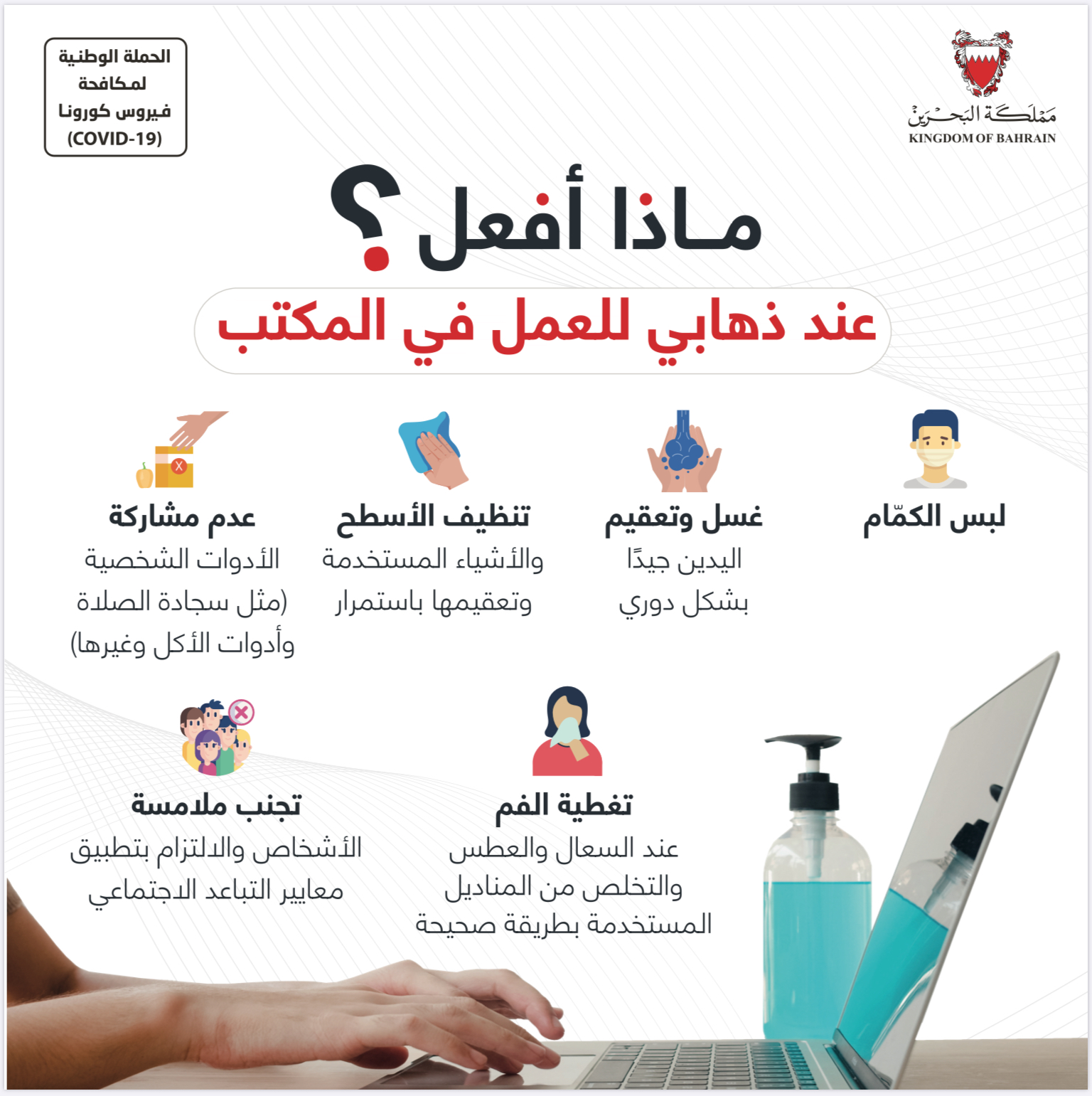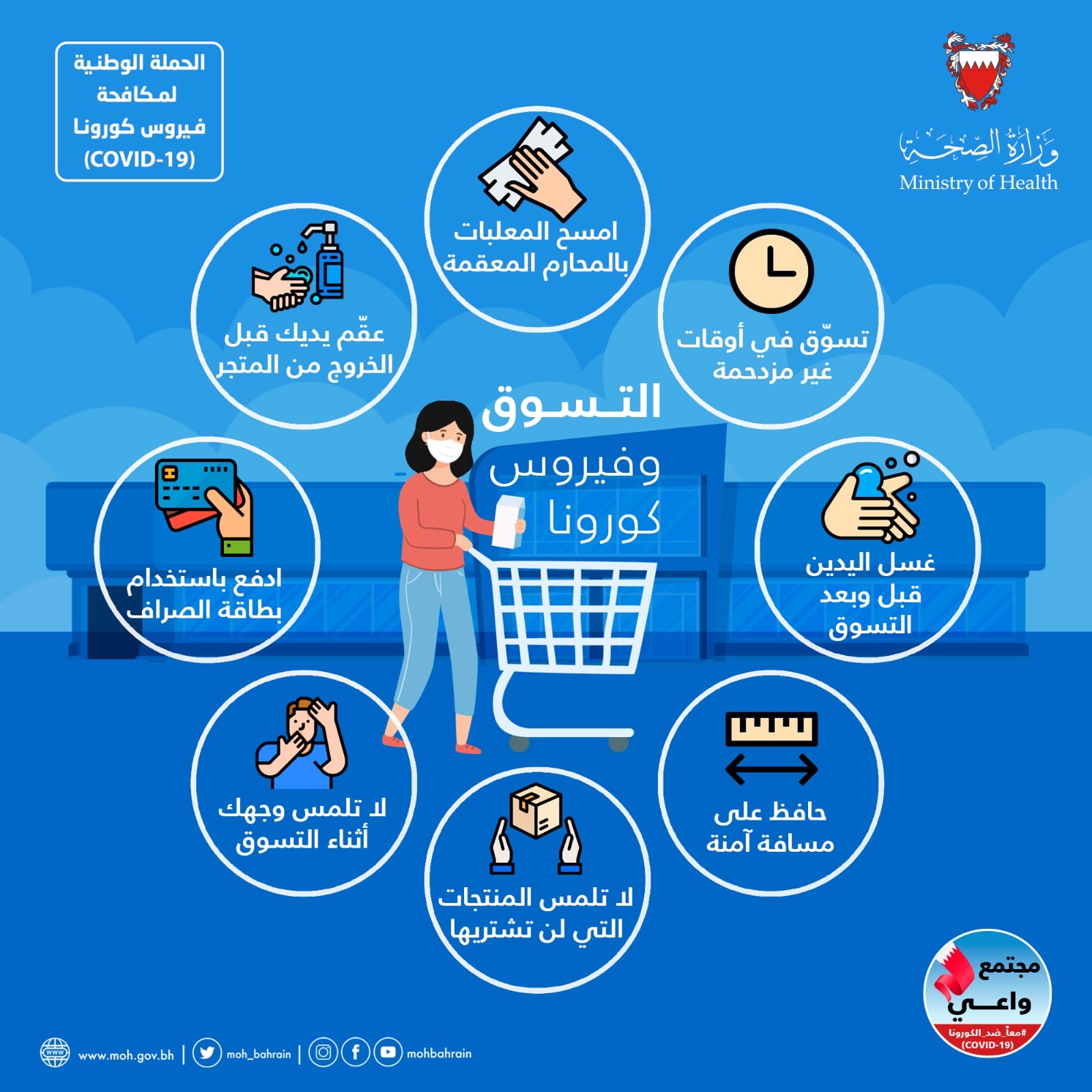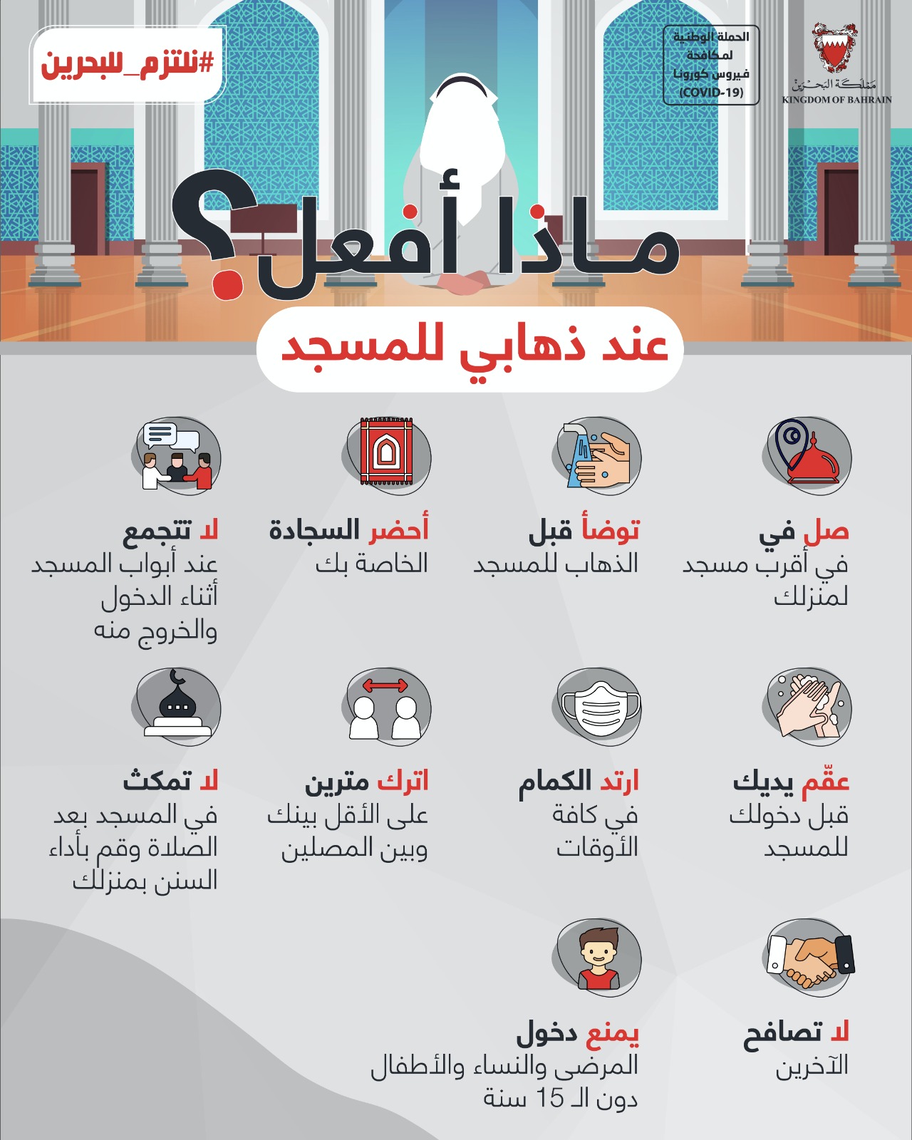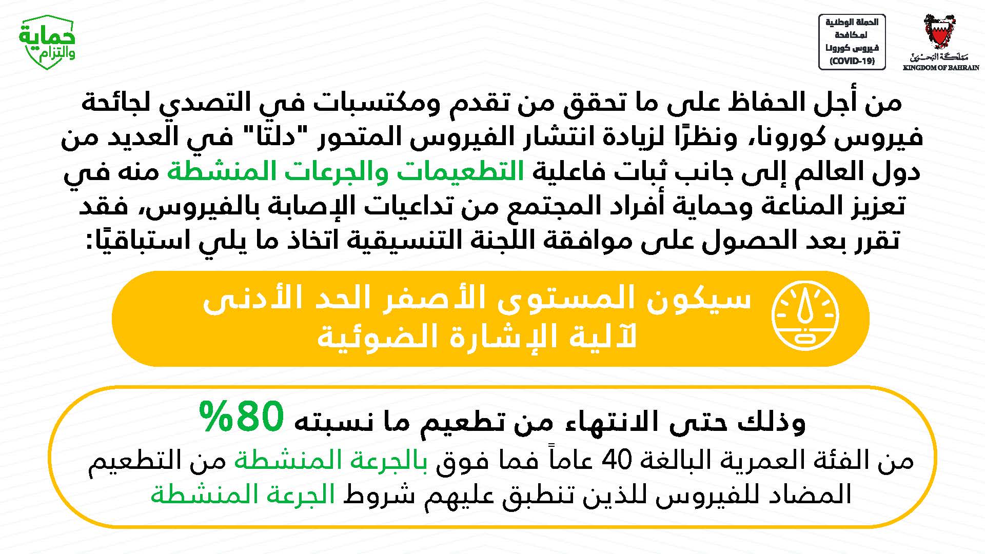 حفاظاً على صحة وسلامة الجميع للتصدي لفيروس كورونا (كوفيد-19) يرجى الالتزام بعدد من التدابير الاحترازية خلال عيد الاضحى المبارك