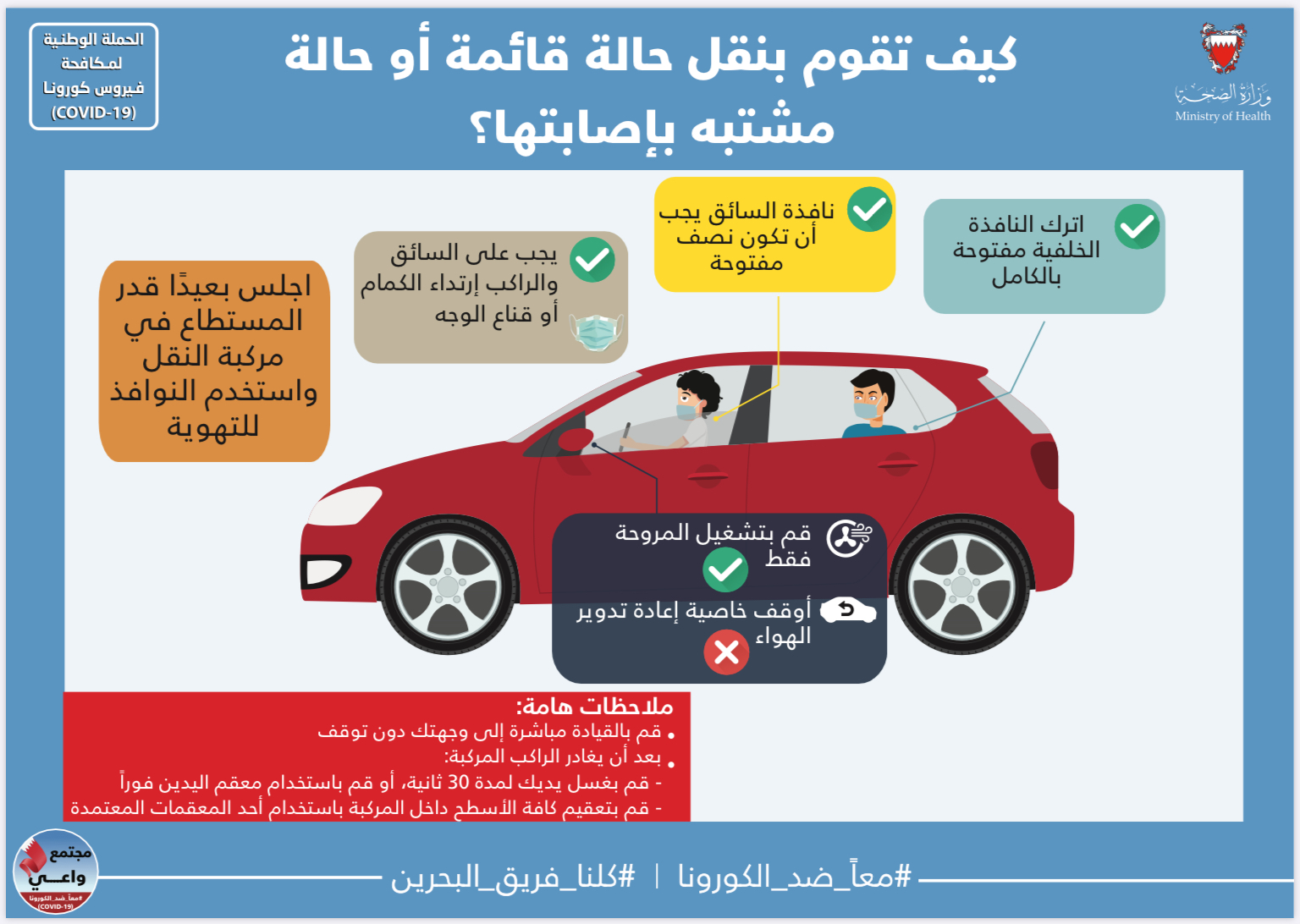 ماذا أفعل عند نقل حالة قائمة أو حالة مشتبه بإصابتها بالسيارة؟