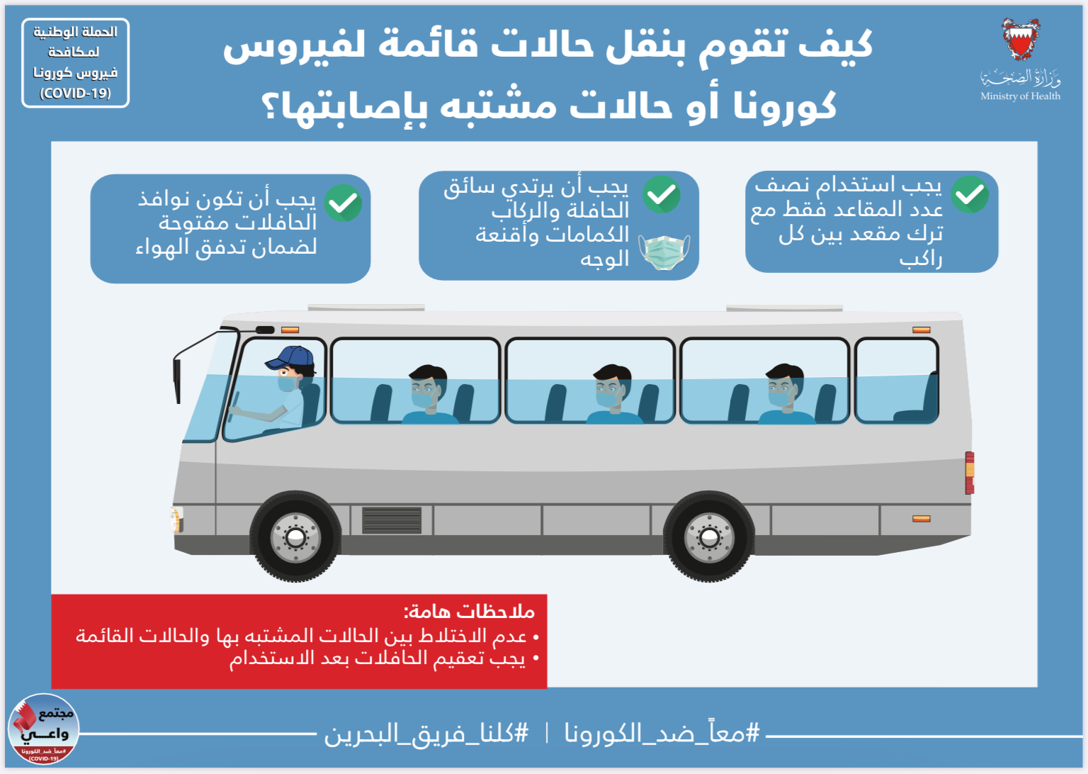 كيف تقوم بنقل حالات قائمة لفيروس كورونا أو حالات مشتبه بإصابتها - الباص