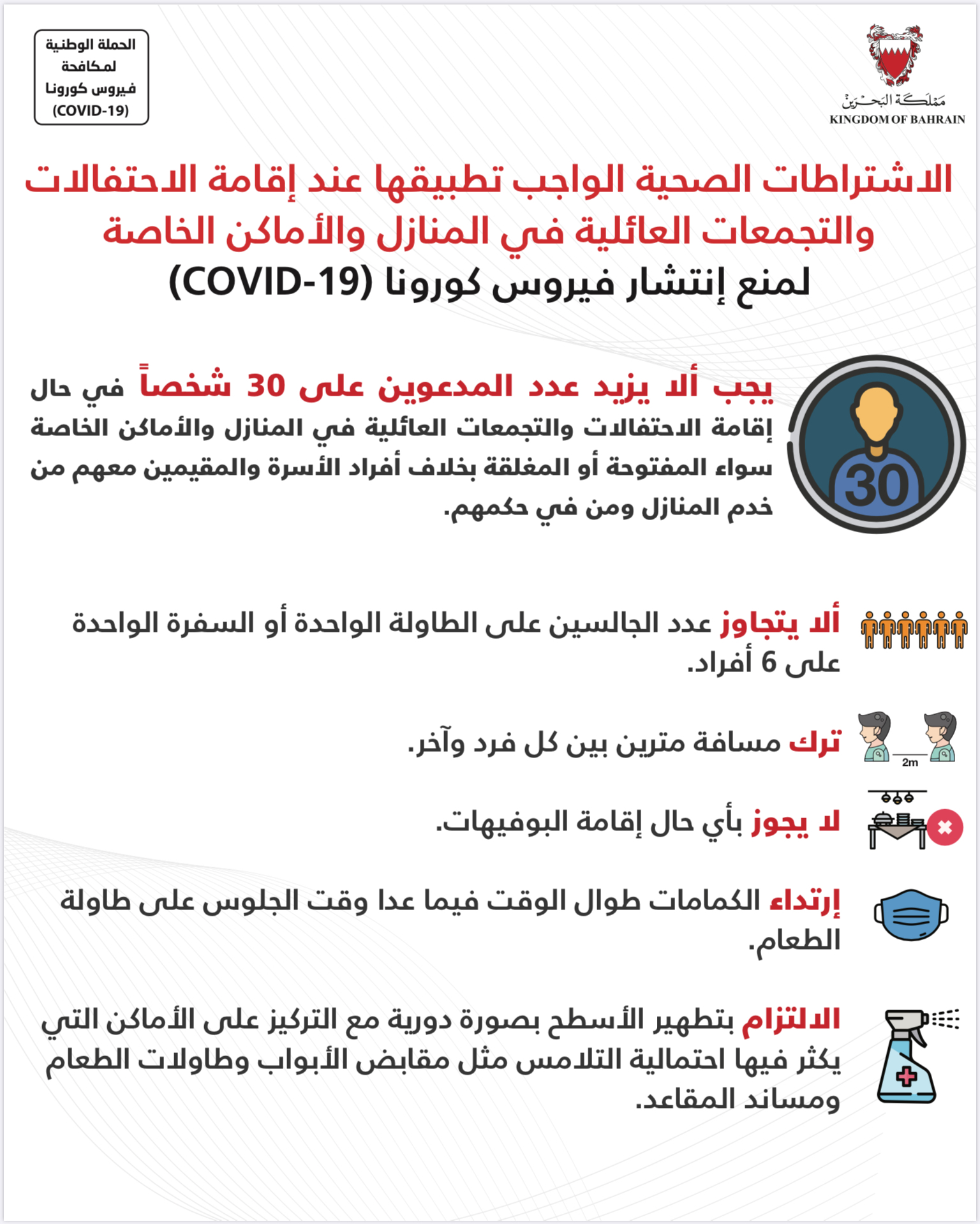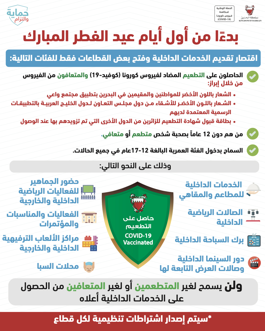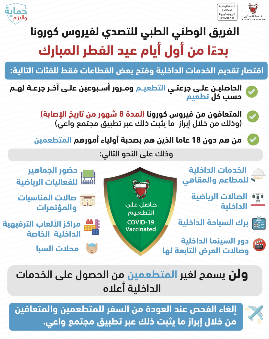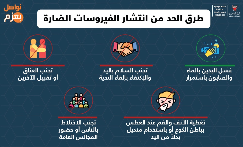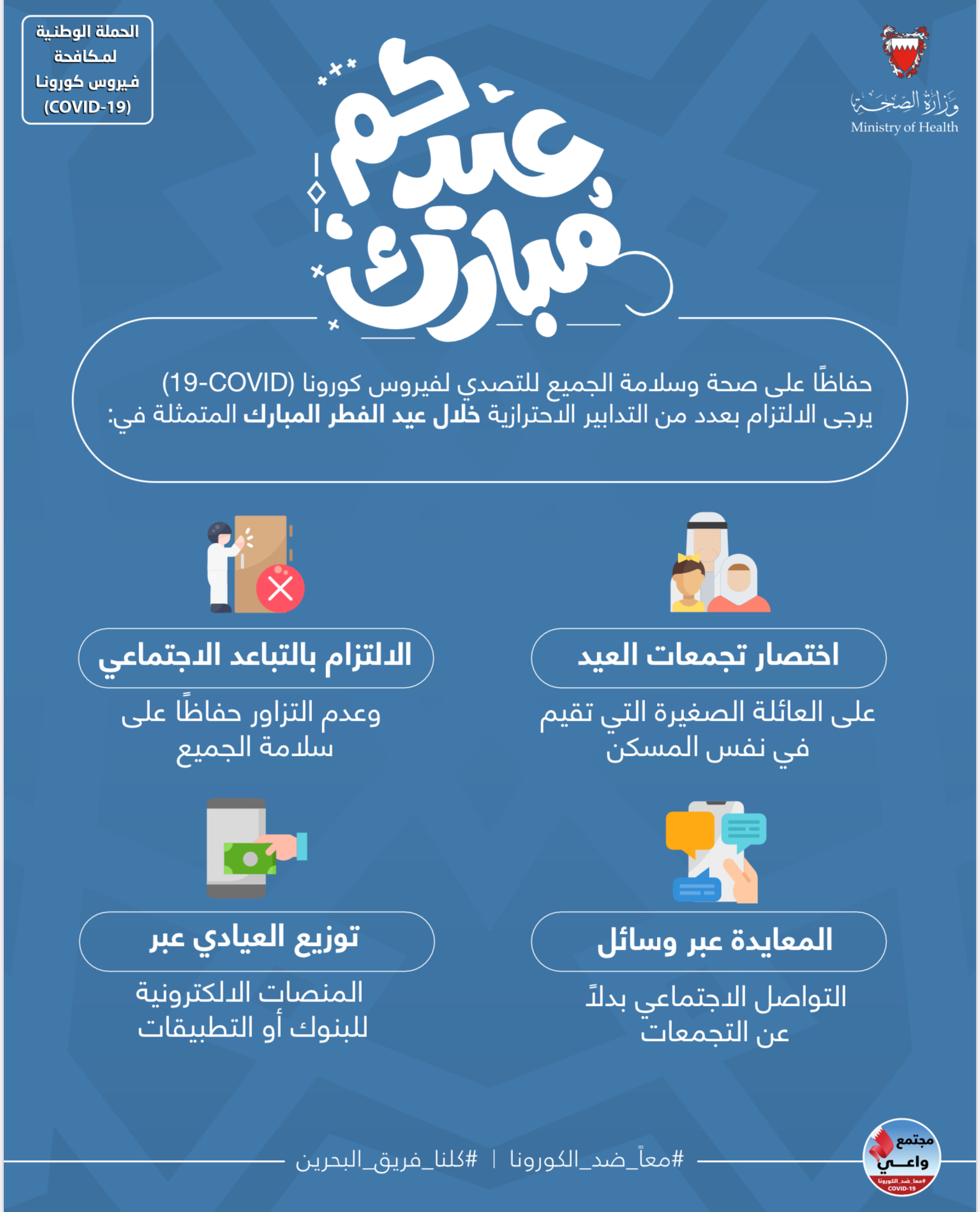 حفاظاً على صحة وسلامة الجميع للتصدي لفيروس كورونا (COVID-19) يرجى الالتزام بعدد من التدابير الاحترازية خلال عيد الفطر المبارك