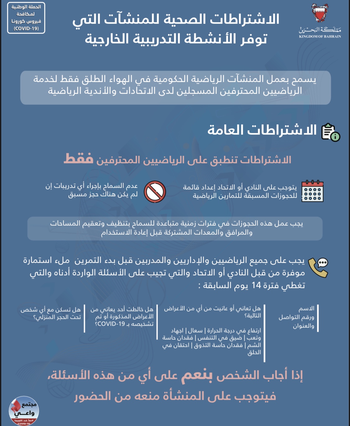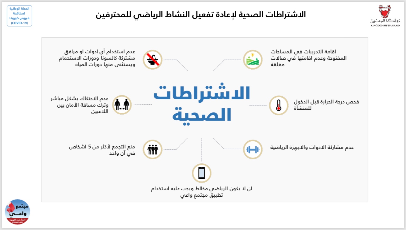 الاشتراطات الصحية لإعادة تفعيل النشاط الرياضي للمحترفين