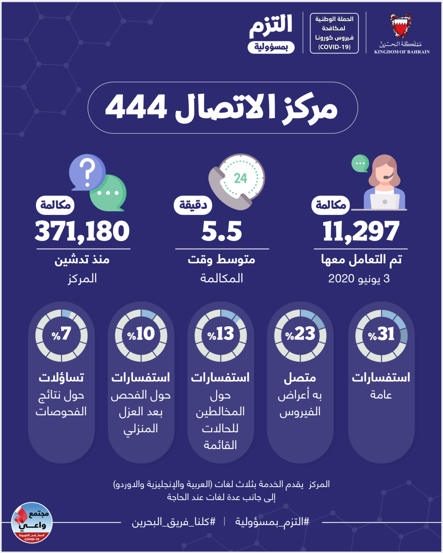 مركز الاتصال 444 تلقى أكثر من 371000 مكالمة من المواطنين والمقيمين للاستفسار عن فيروس كورونا