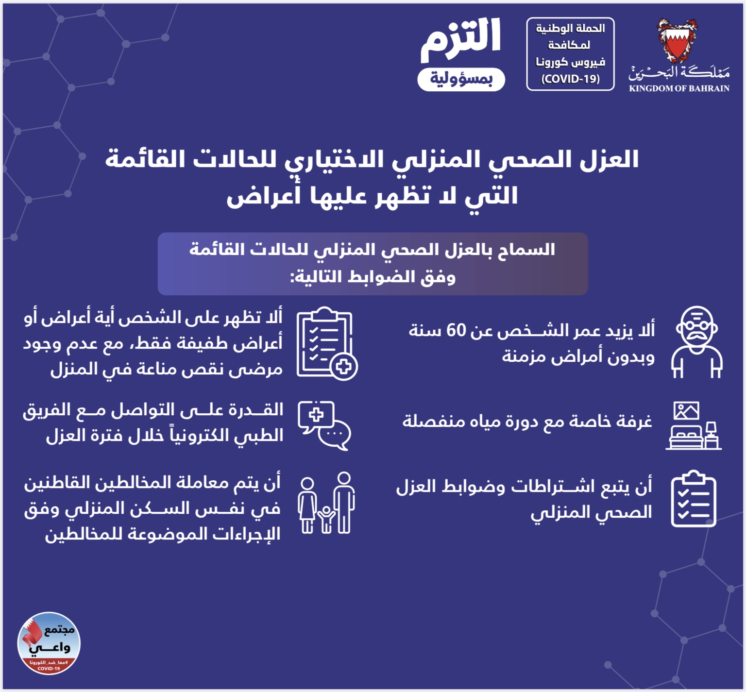 العزل الصحي المنزلي الاختياري للحالات القائمة التي لا تظهر عليها أعراض