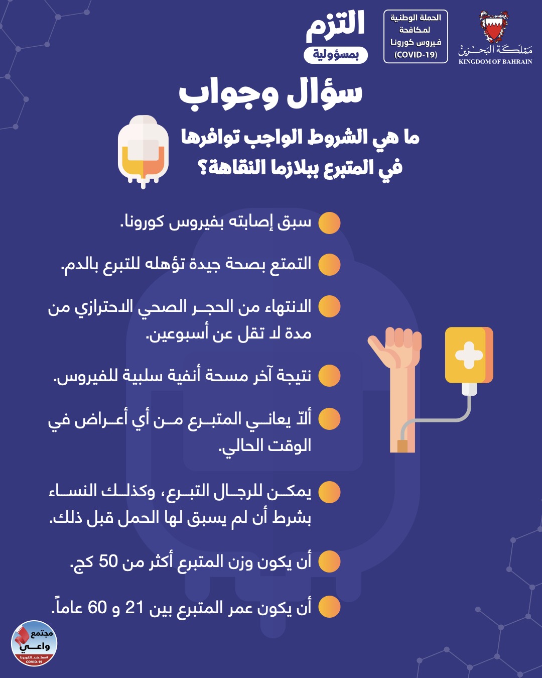 الشروط الواجب توافرها في المتبرع ببلازما النقاهة