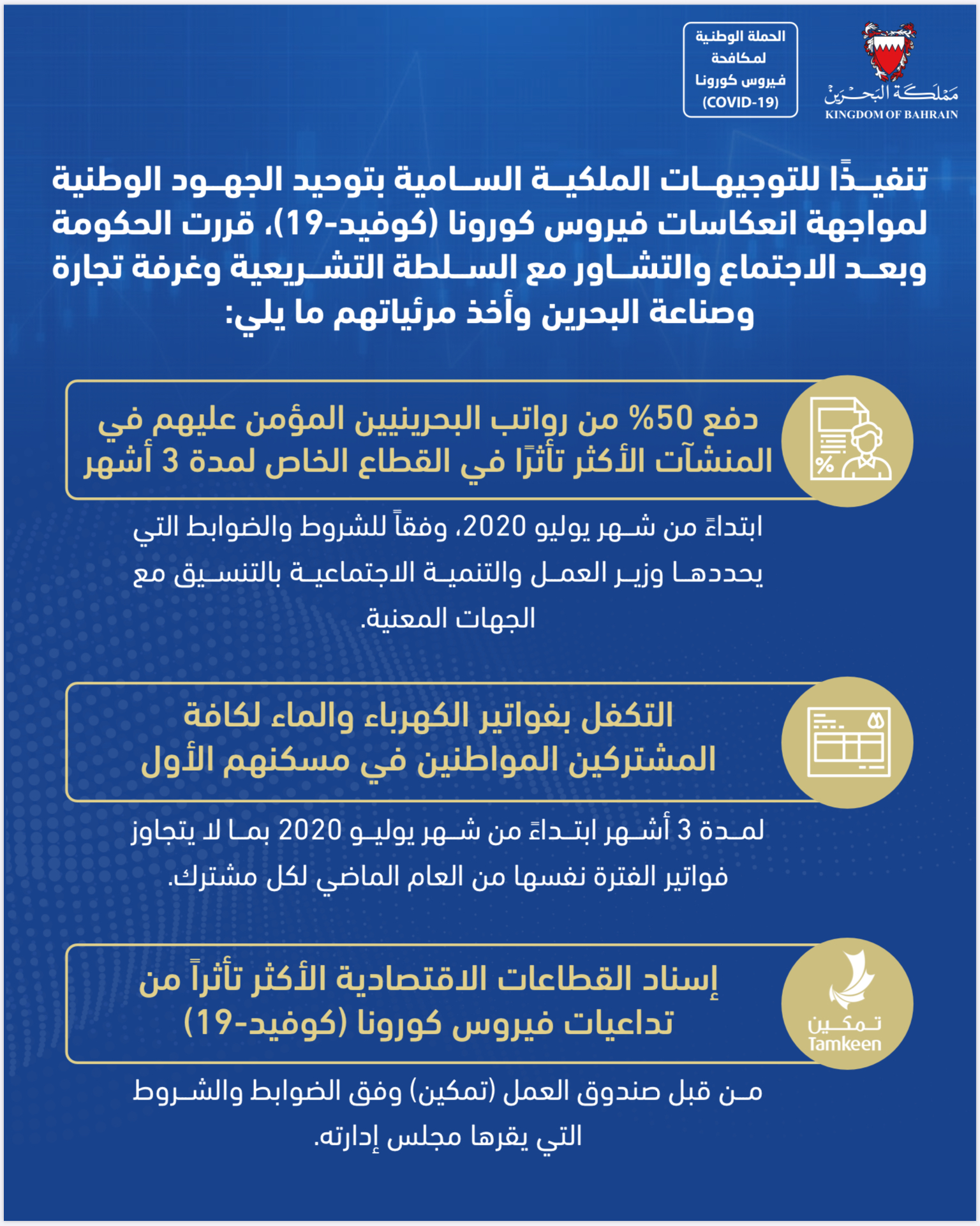 التوجيهات الملكية السامية بتوحيد الجهود الوطنية لمواجهة انعكاسات فيروس كورونا