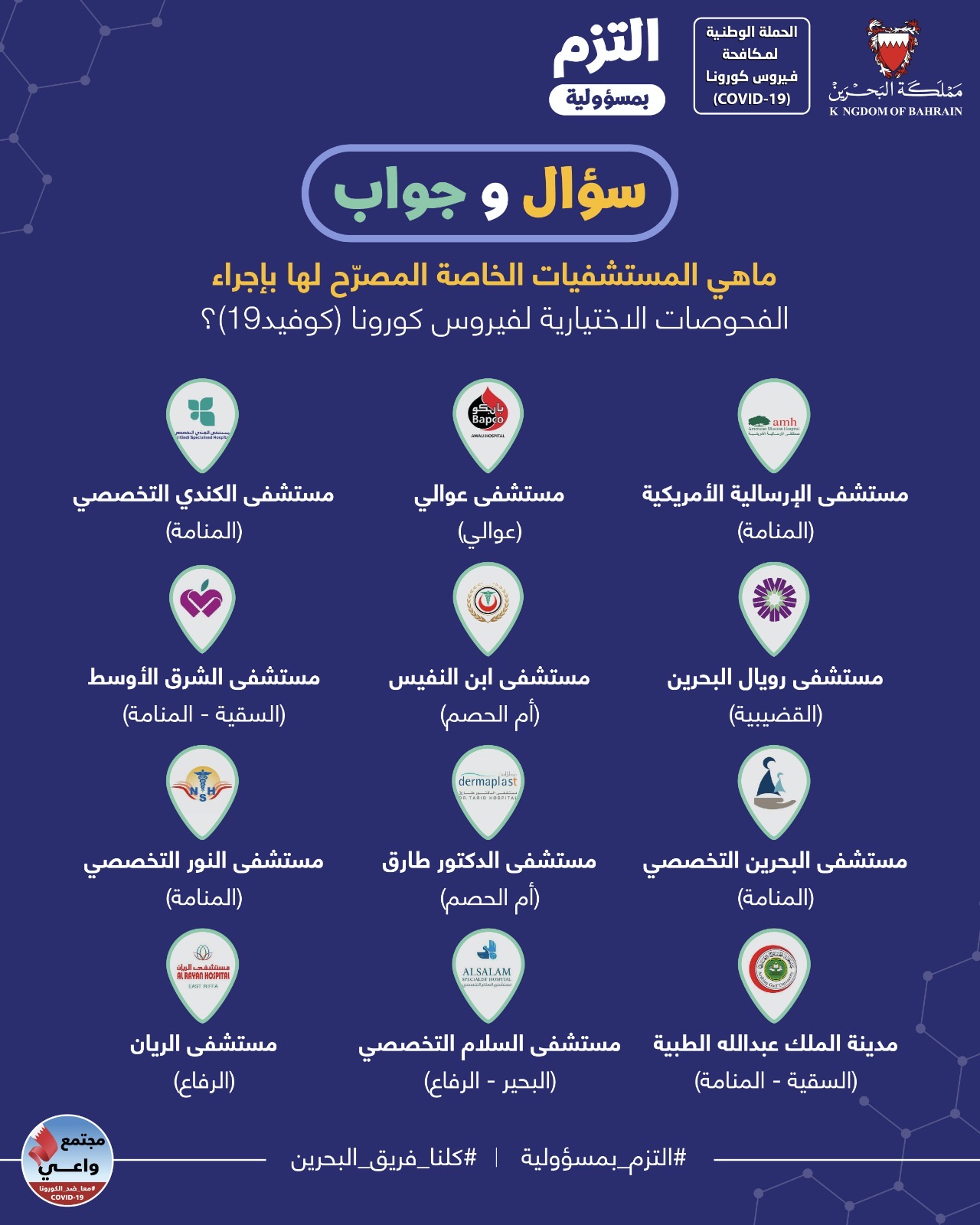 ماهي المستشفيات الخاصة المصرح لها باجراء الفحوصات الاختيارية لفيروس كورونا (كوفيد-١٩)؟