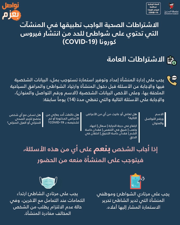 الاشتراطات الصحية الوجب تطبيقها في المنشآت التي تحتوي عى شواطئ للحد من انتشار فيروس كورونا كوفيد 19