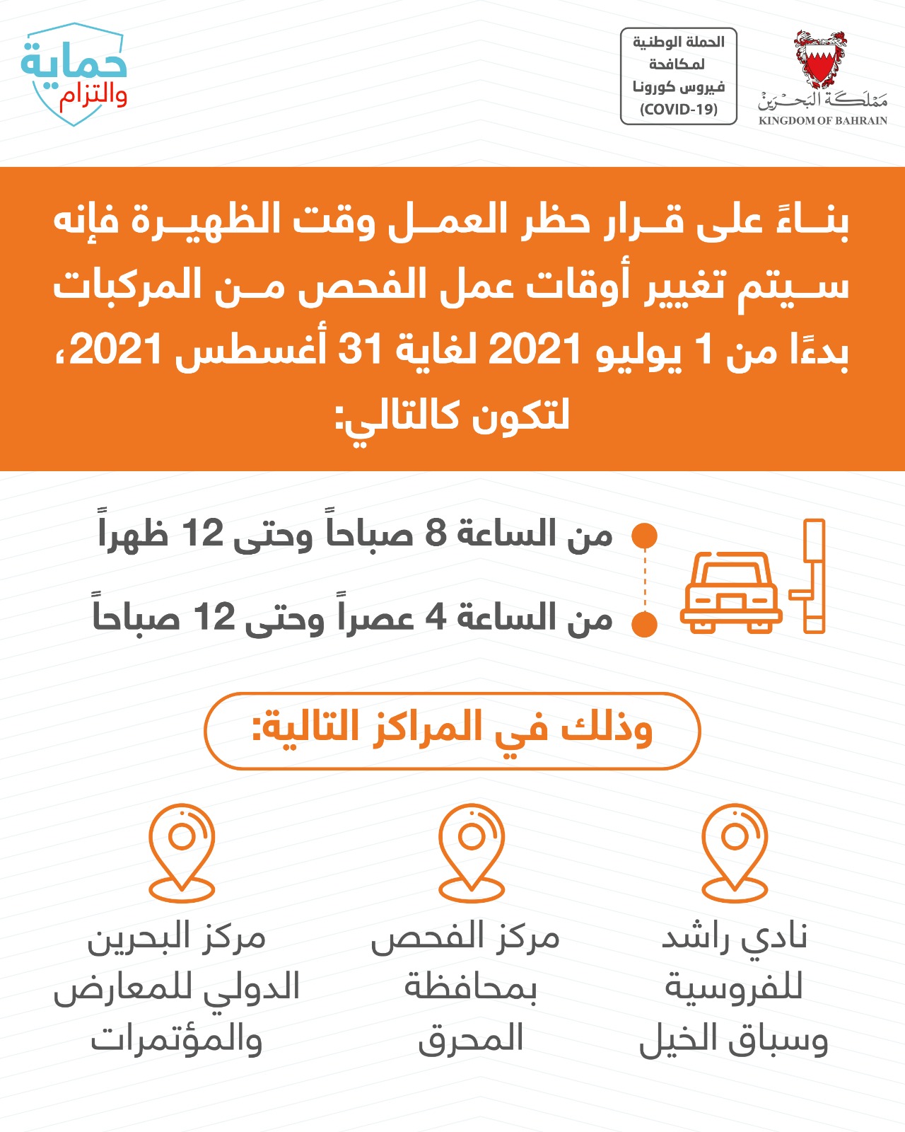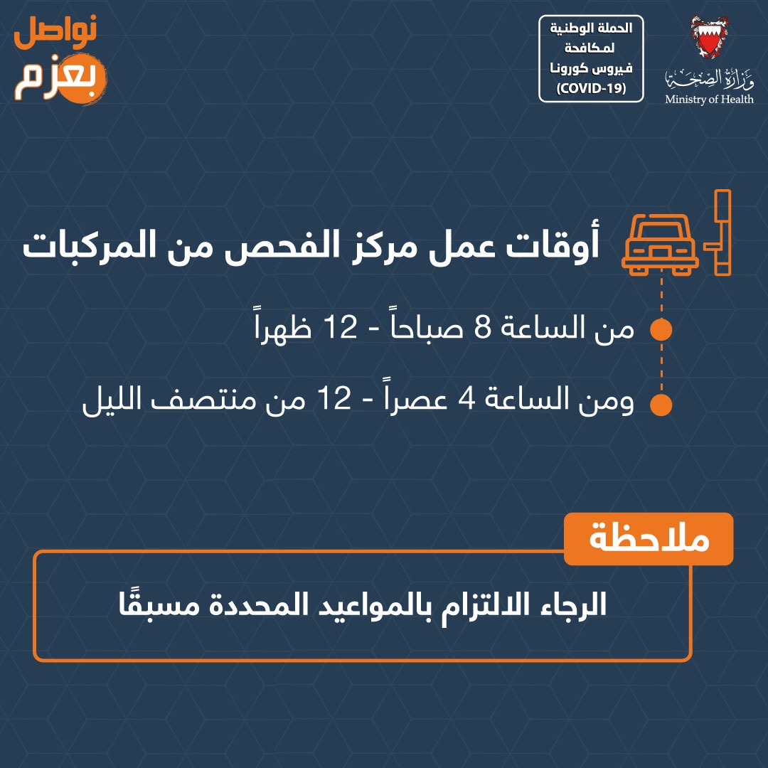 أوقات عمل مركز الفحص من المركبات