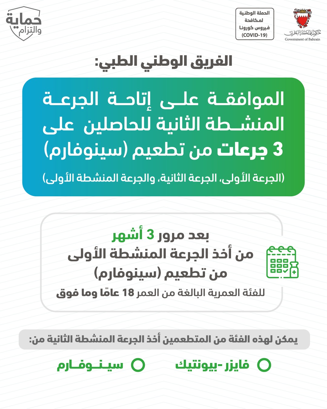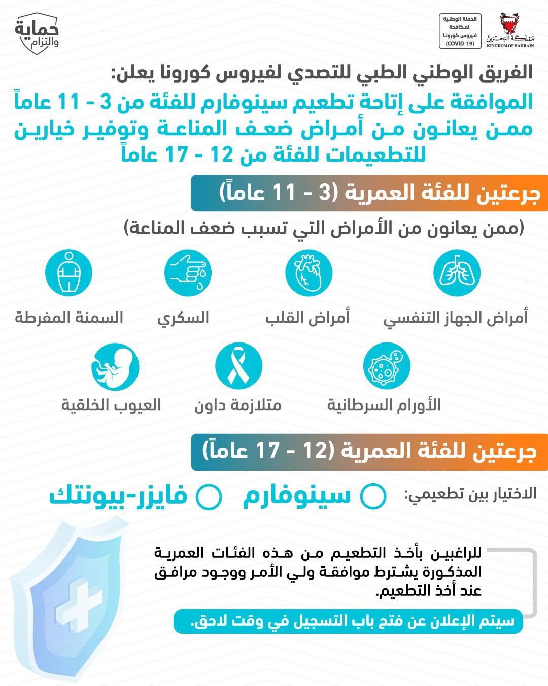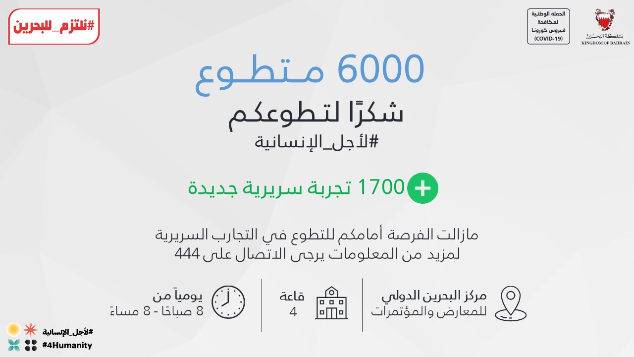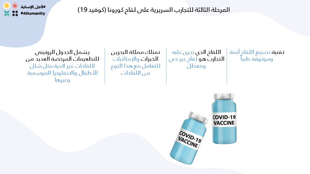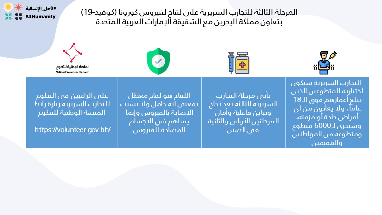 المرحلة الثالثة للتجارب السريرية على لقاح لفيروس كورونا (كوفيد-19) بتعاون مملكة البحرين مع الشقيقة الإمارات العربية المتحدة