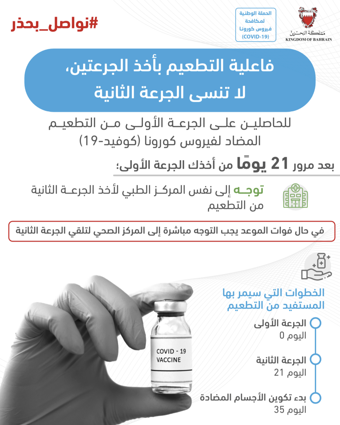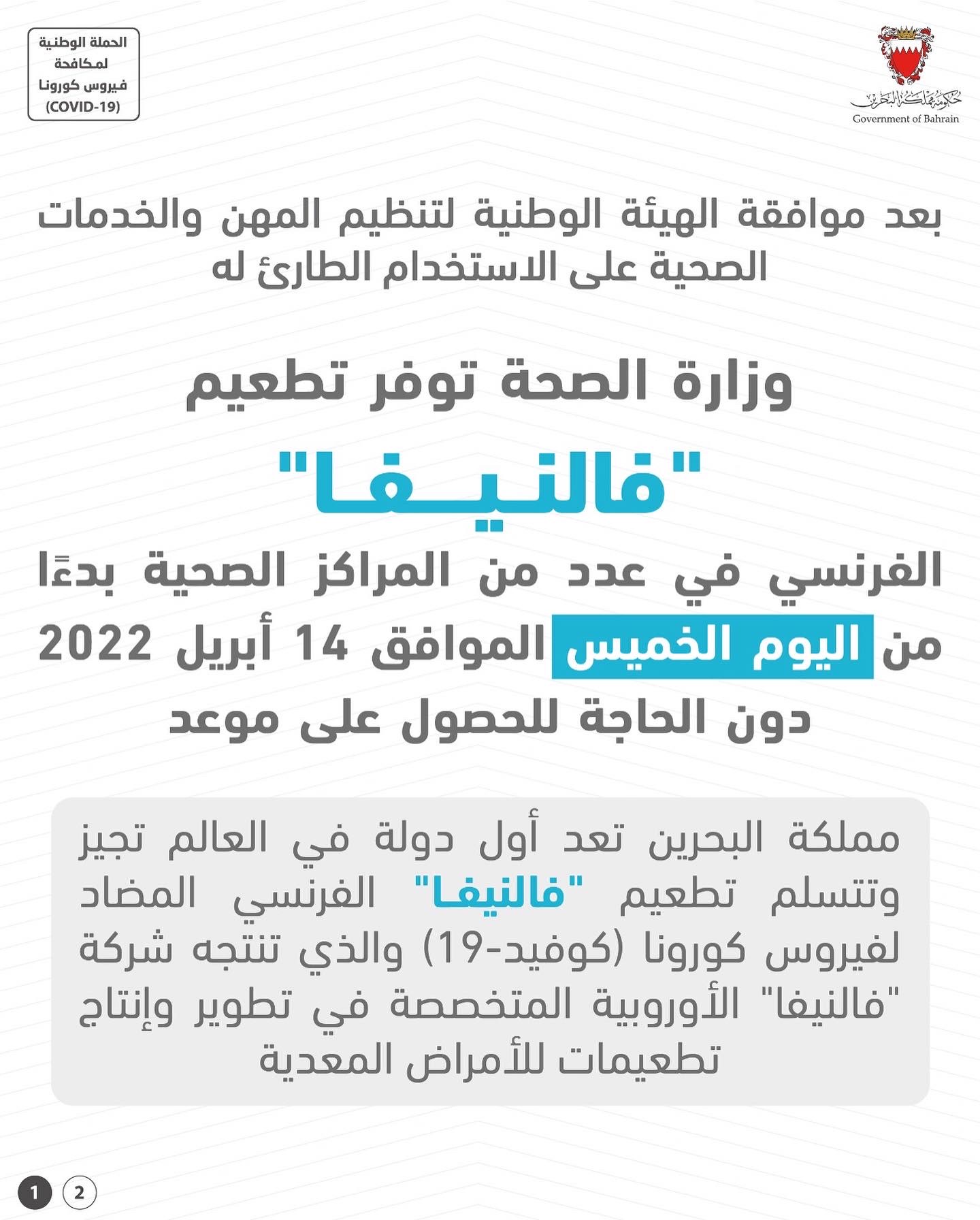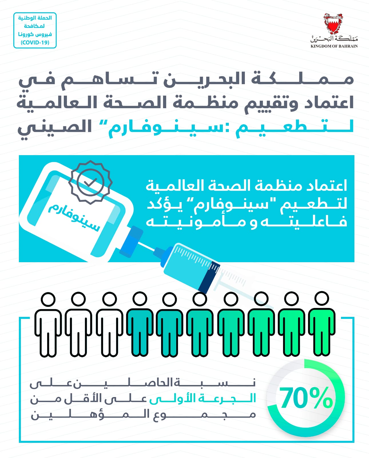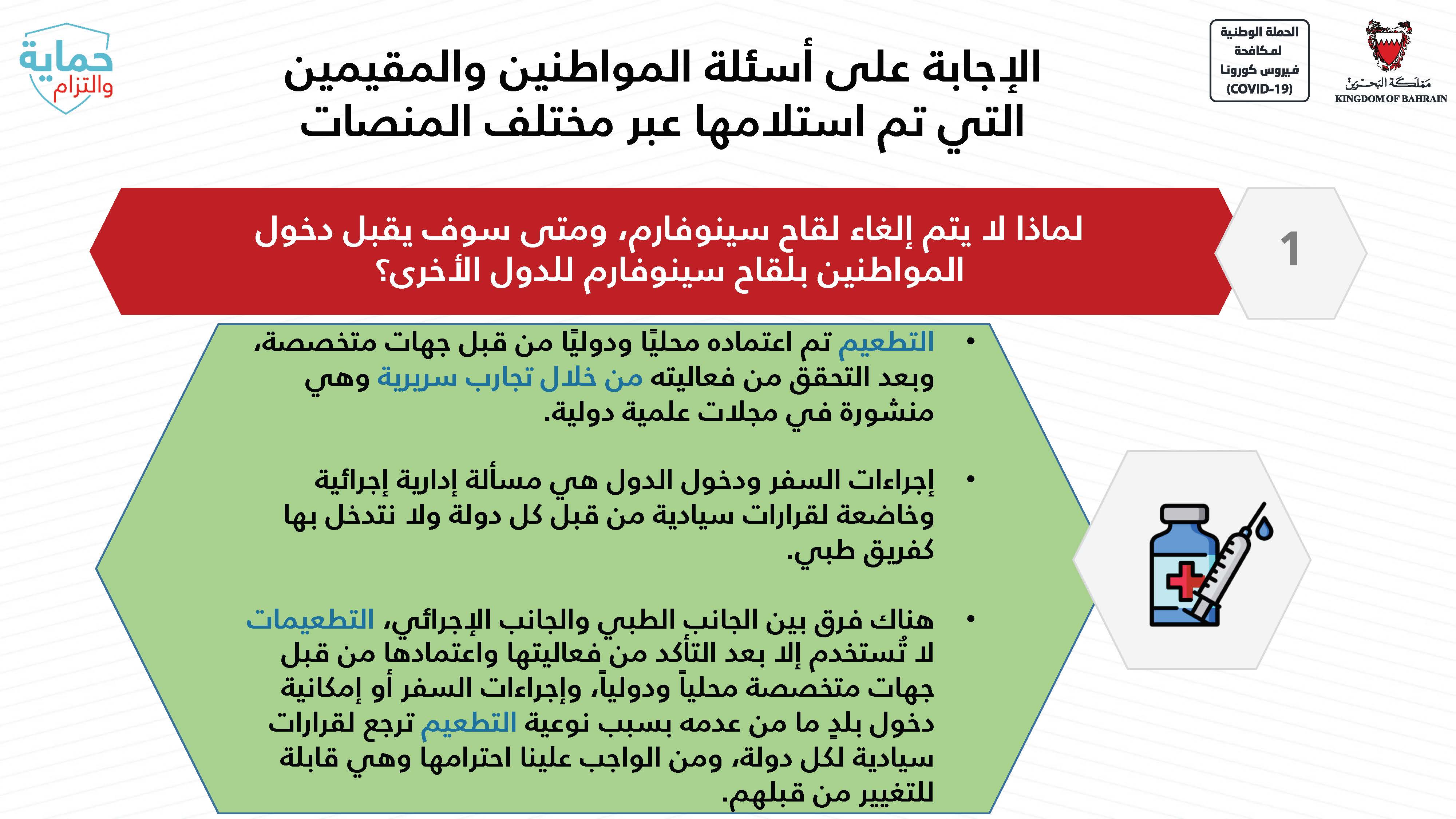 المرحلة الثالثة للتجارب السريرية على لقاح لفيروس كورونا (كوفيد-19) بتعاون مملكة البحرين مع الشقيقة الإمارات العربية المتحدة