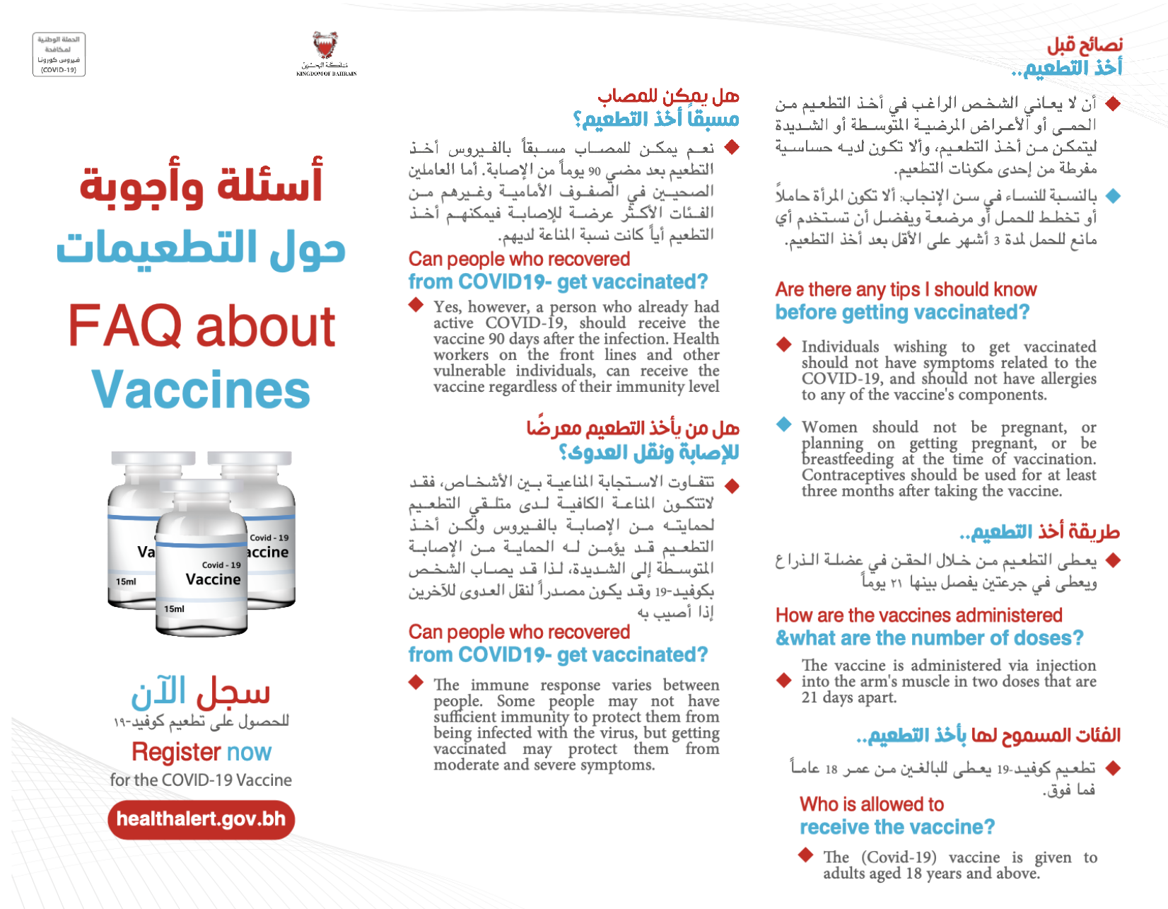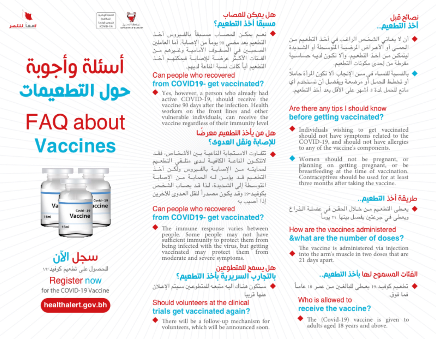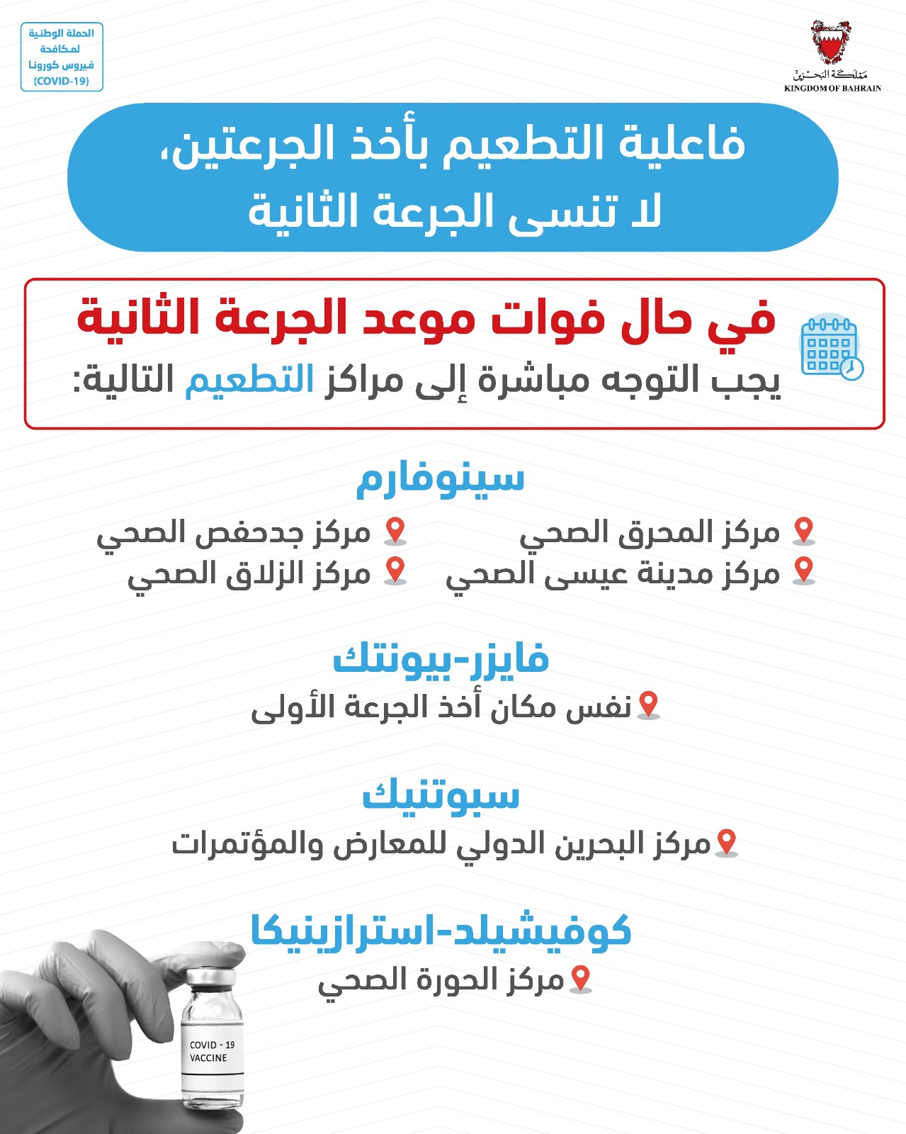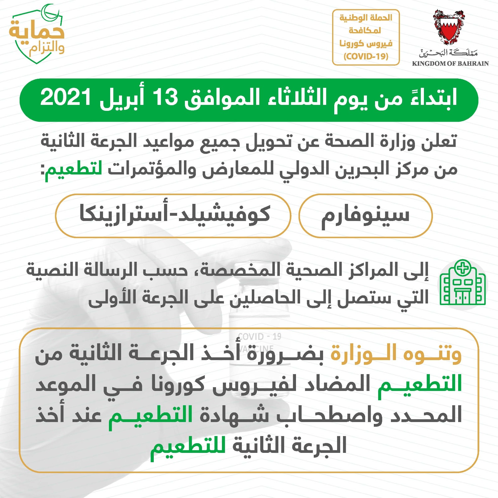 المرحلة الثالثة للتجارب السريرية على لقاح لفيروس كورونا (كوفيد-19) بتعاون مملكة البحرين مع الشقيقة الإمارات العربية المتحدة