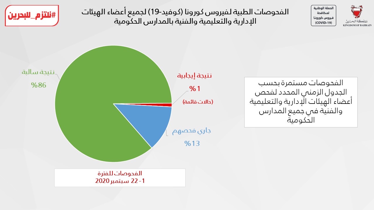 الفحوصات الطبية لفيروس كورونا (كوفيد-19) لجميع أعضاء الهيئات الإدارية والتعليمية والفنية بالمدارس الحكومية