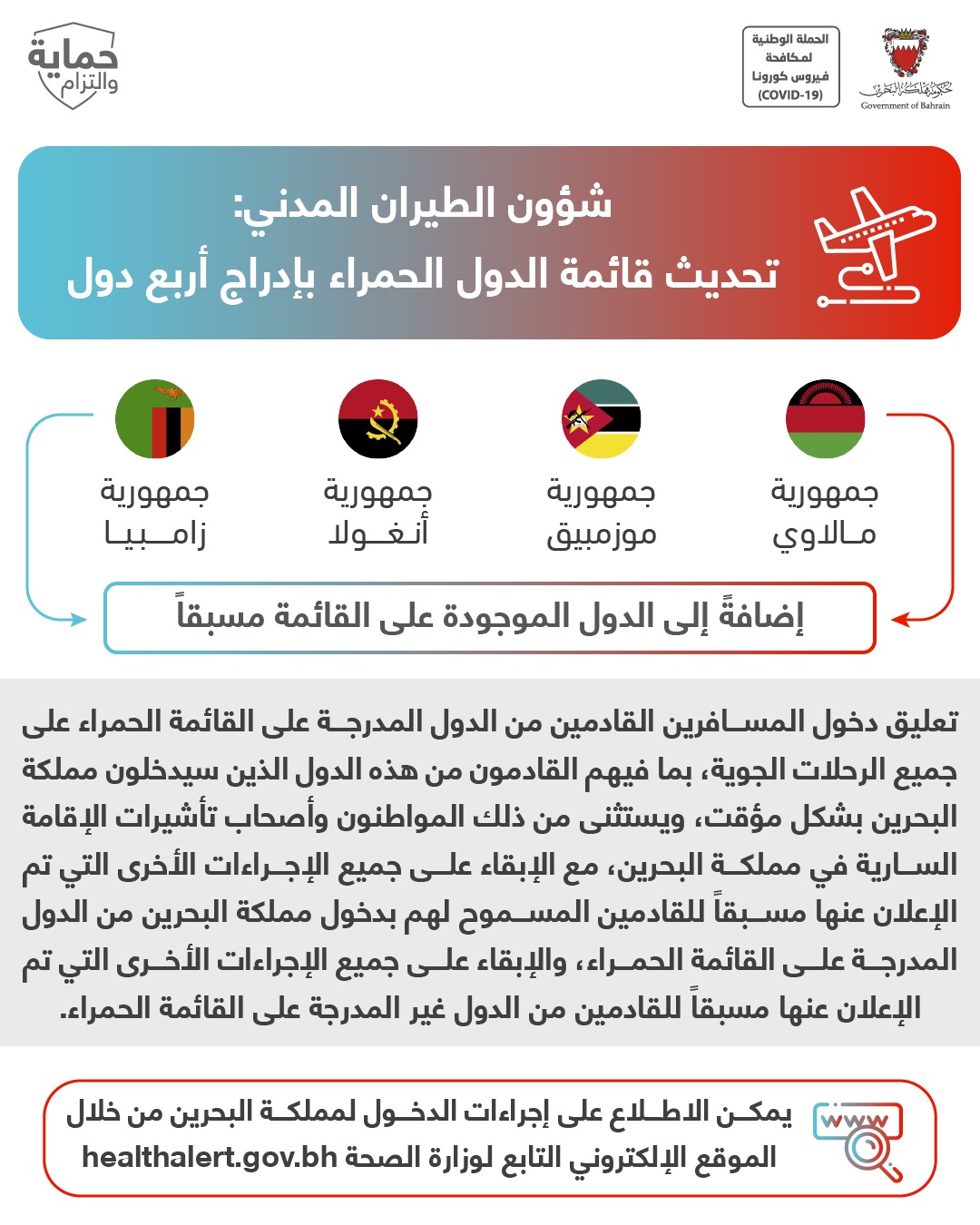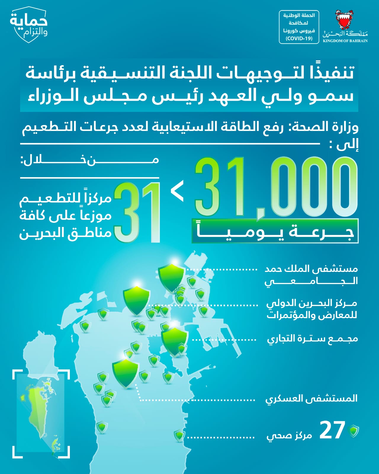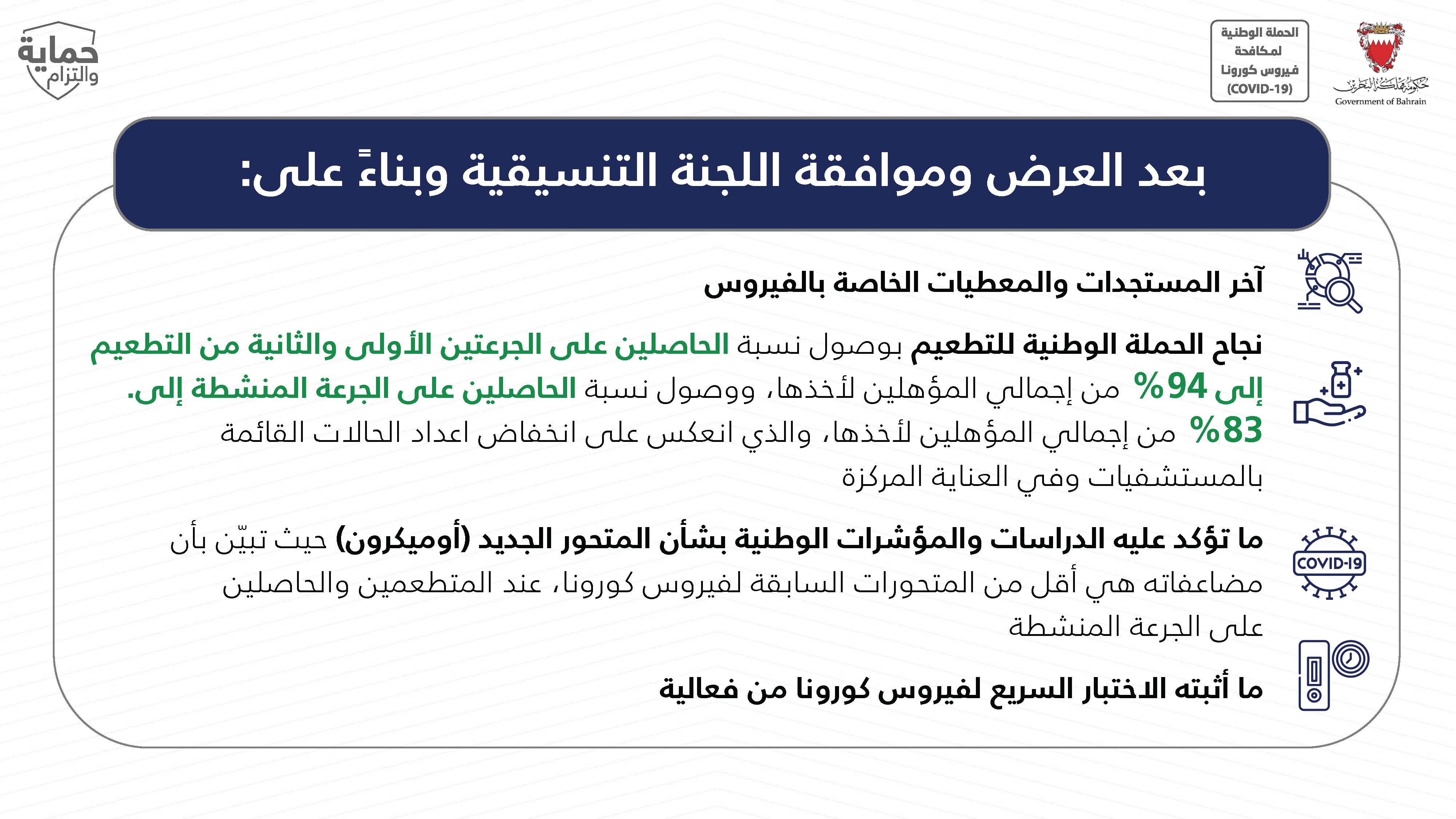 التقرير اليومي لفيروس كورونا (COVID-19) في مملكة البحرين