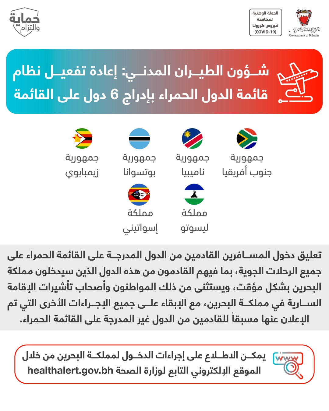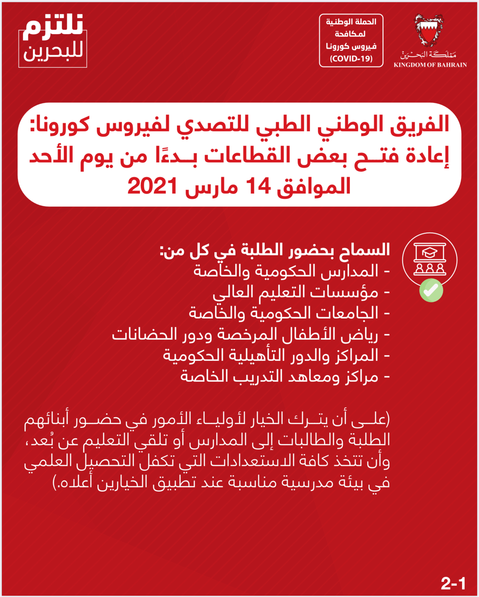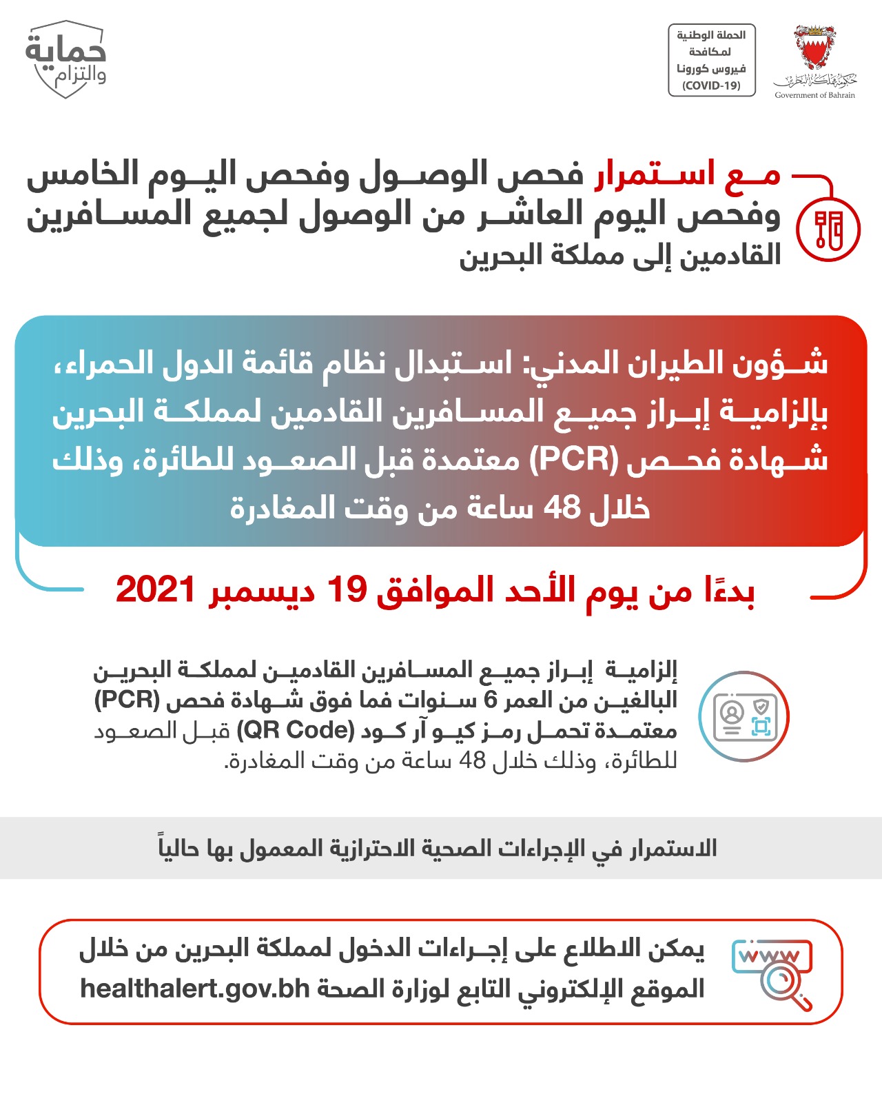 التقرير اليومي لفيروس كورونا (COVID-19) في مملكة البحرين