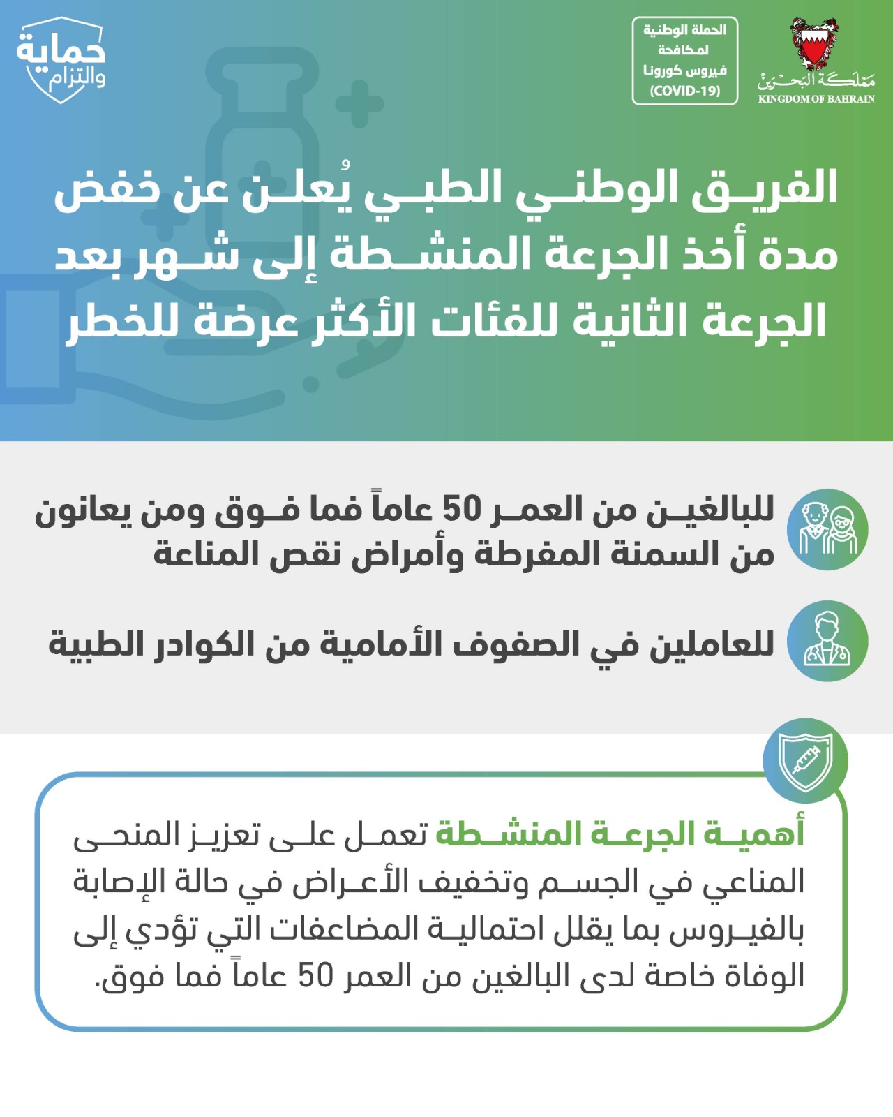 توصيات الفريق الوطني الطبي للتصدي لفيروس كورونا كوفيد ١٩
